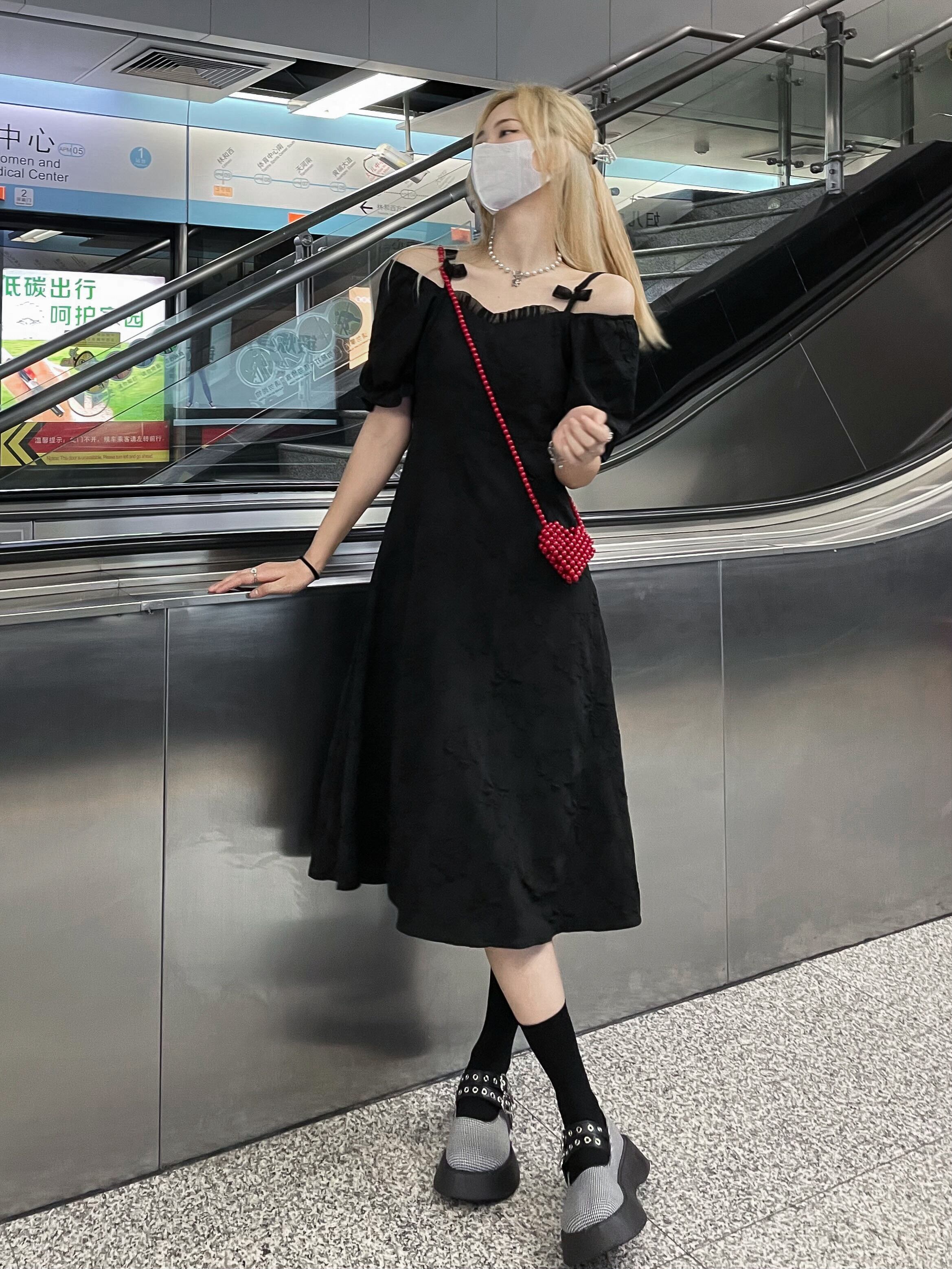 ダークAラインスカート サマーVネックスリーブスタンダードスリムドレス レトロ 夏物 kumikum53521816203