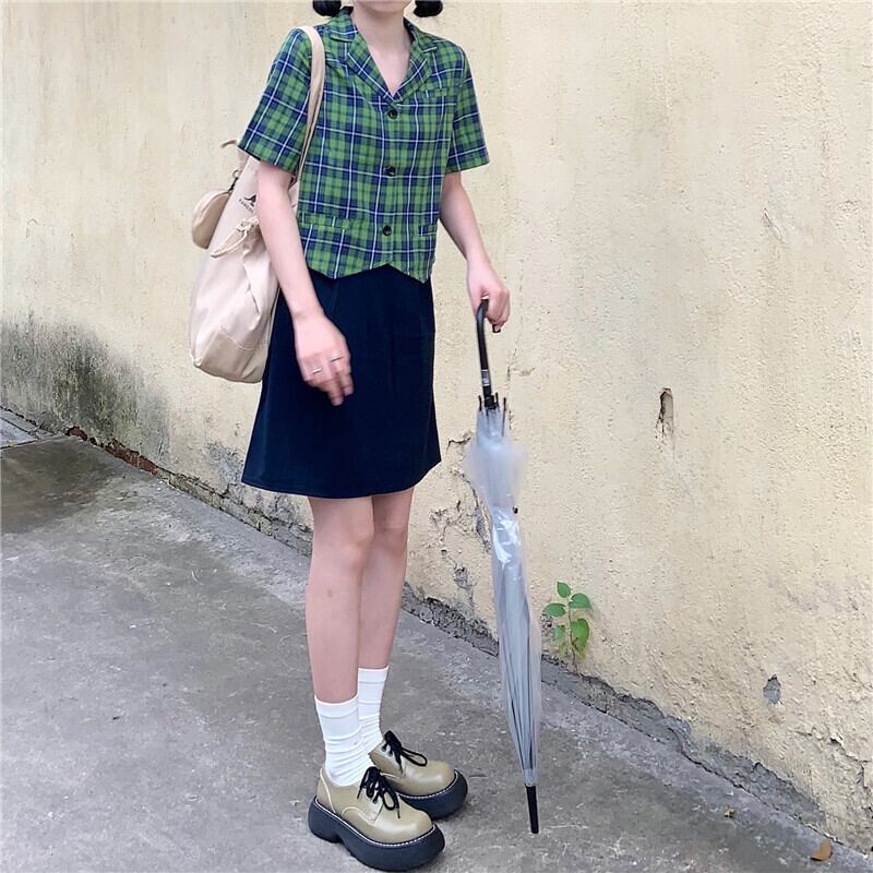 スタンダードショートスタイルカラージャケット サマーハイウェストウェストスカート レディース レトロ 夏物 kumikum8402399830