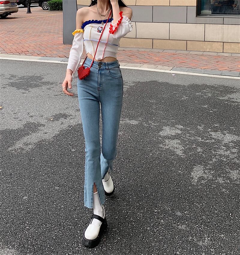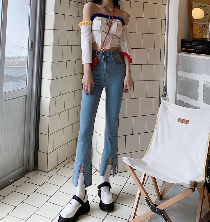サマースリムジーンズ ハイウェストパンツ レディース 夏物 kumikum91583333606