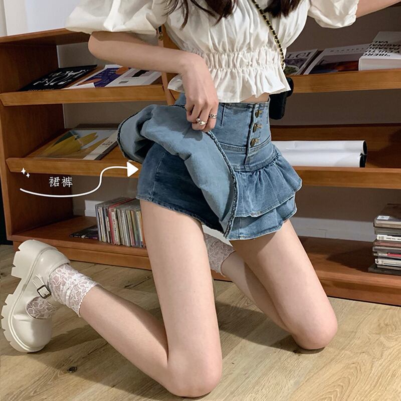 ハイウェストウェストスリムジーンズ サマースタイルスタンダードスカート Aライン レトロ 夏物 kumikum57803266369
