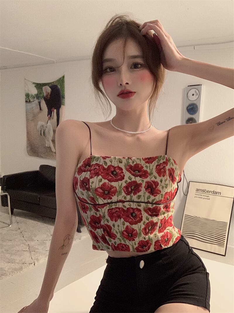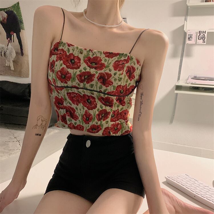 スタンダードトップス サマーレッドスリムレディース レトロ 夏物 kumikum65491129149