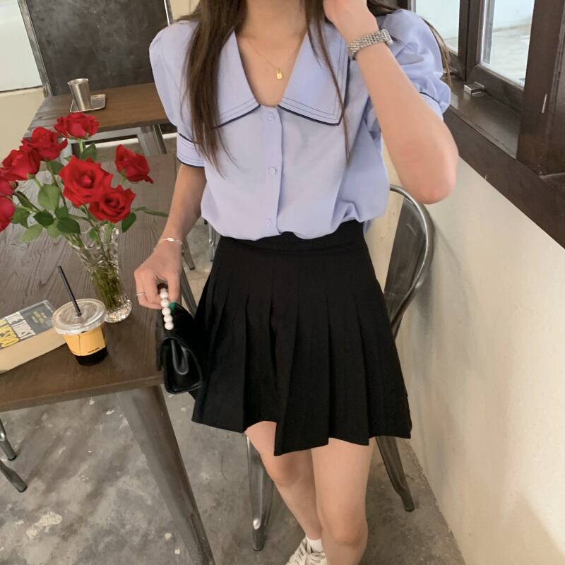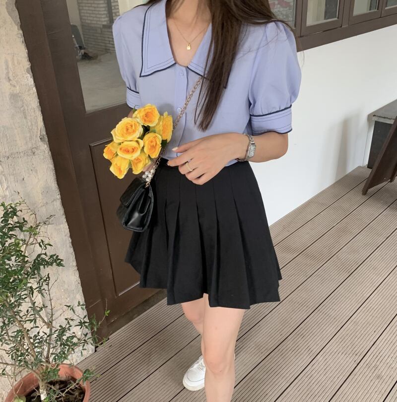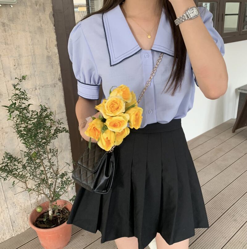 ブルースリーブトップス ルーズスタイルスリムシャツ サマー 夏物 kumikum76672020134