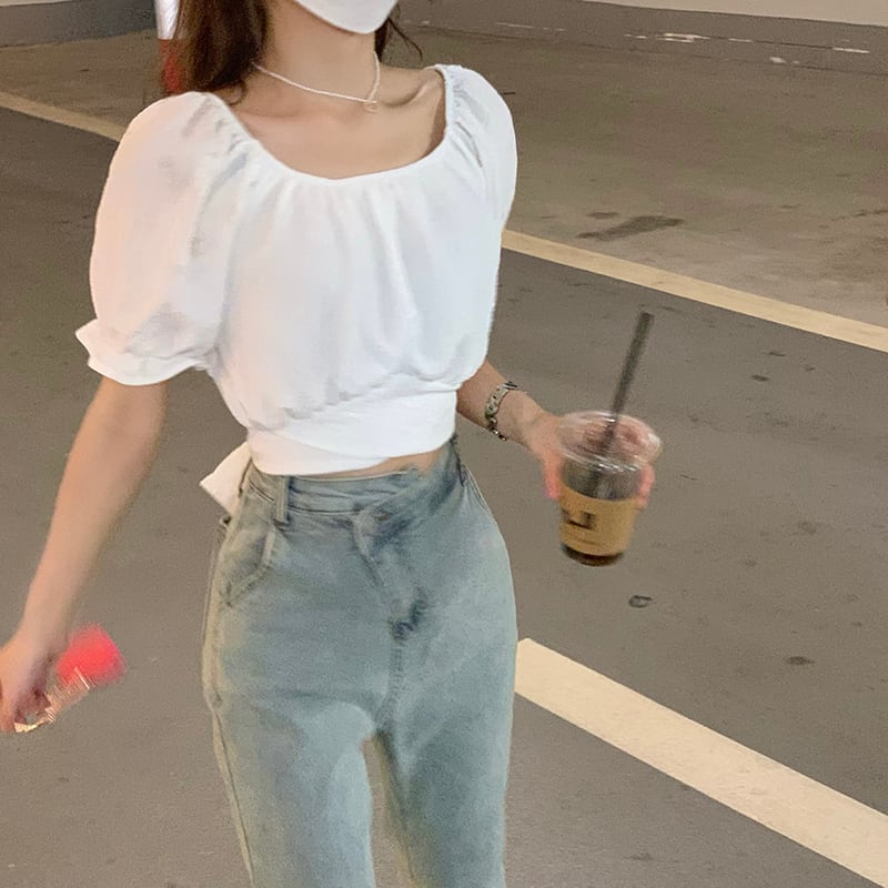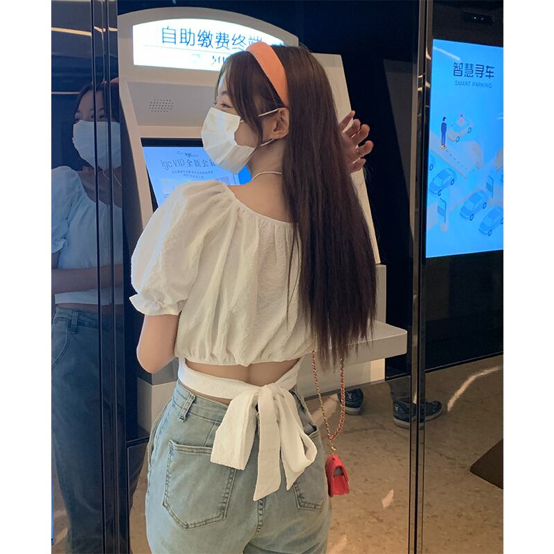 バックスリーブシャツ サマーリボンショートトップス 夏物 kumikum64068129461