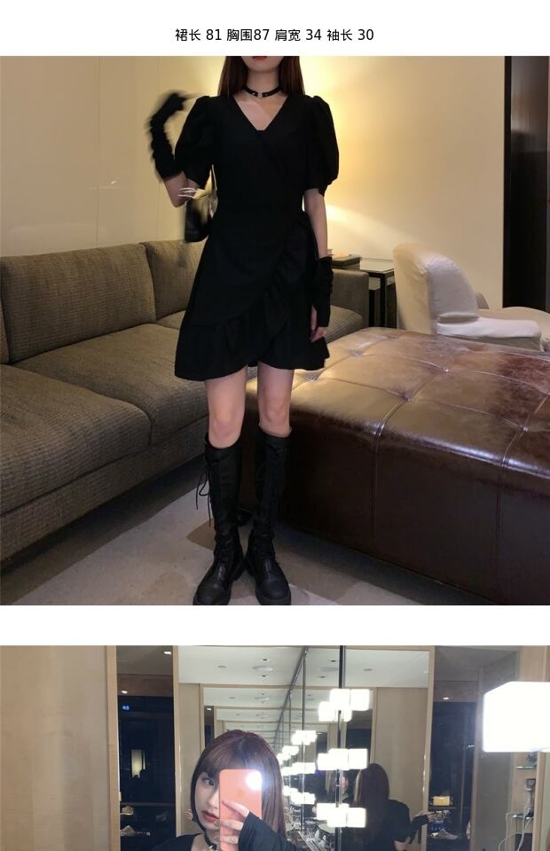スタンダードAラインスカート サマーウェストブラックドレス Vネックスリム レトロ 夏物 kumikum49088395190