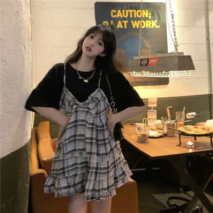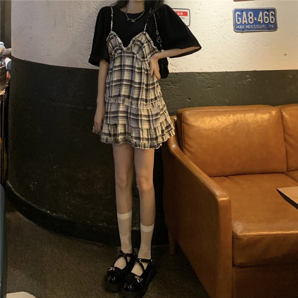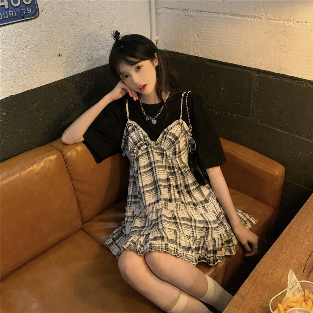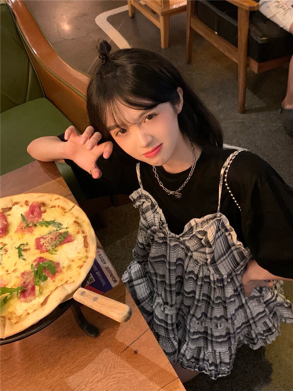 Vネックドレス サマーブラックTシャツ レディース 夏物 kumikum58754918868