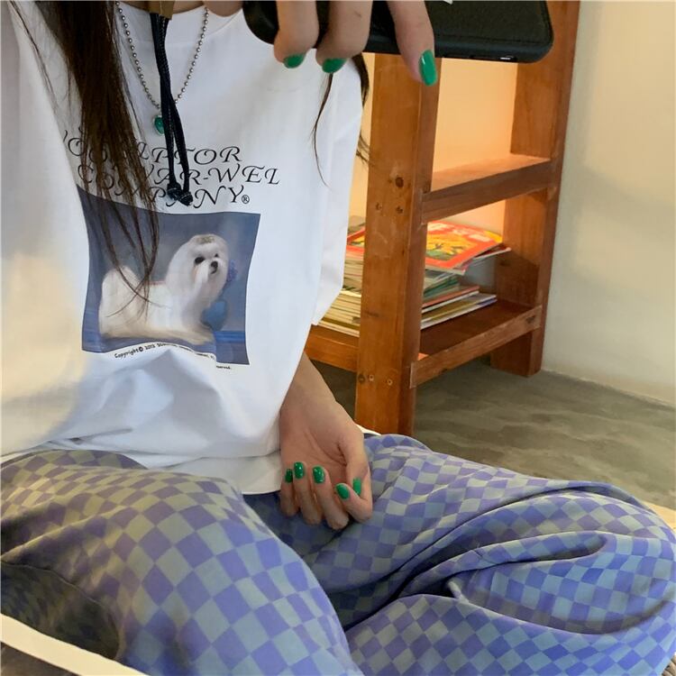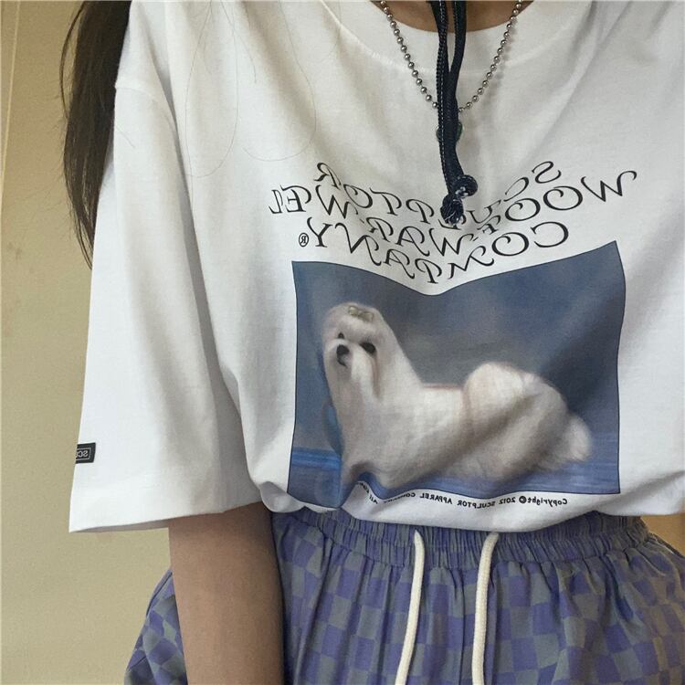 スタンダードトップス サマープリント柄ラウンドネックカジュアルTシャツ レトロ 夏物 Oネック kumikum79535640213