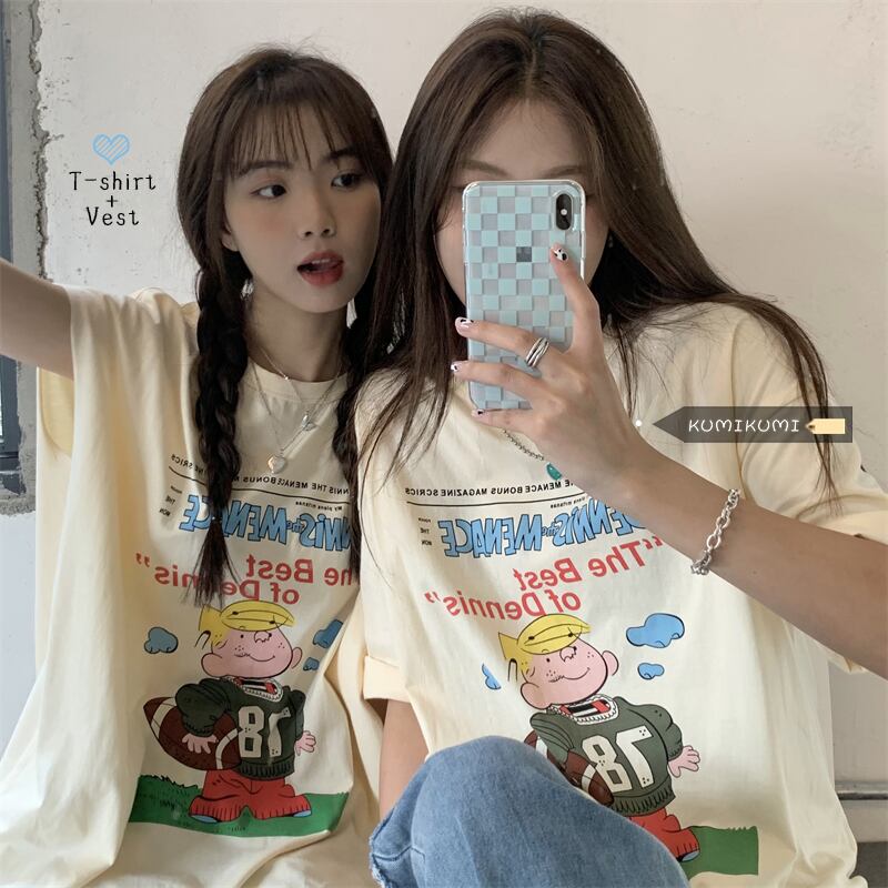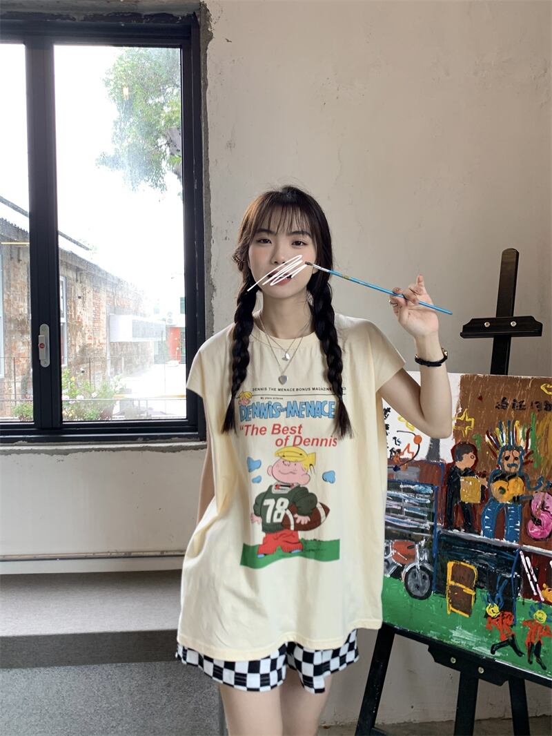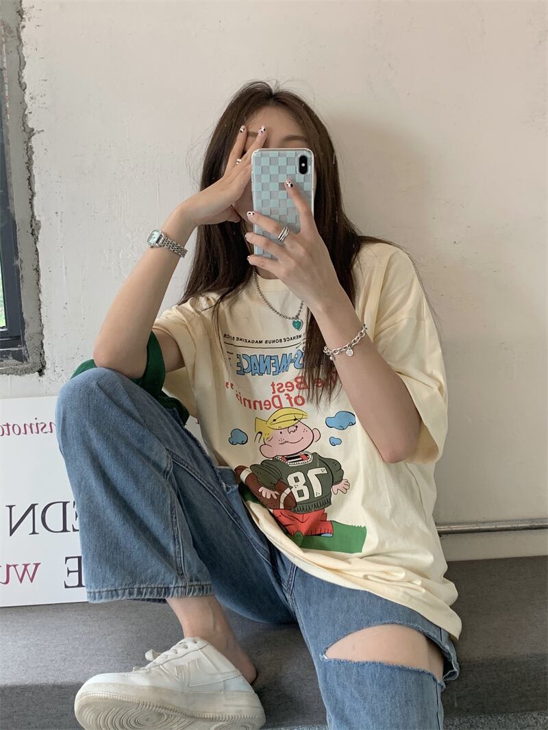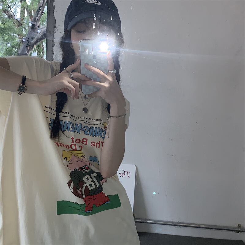 プリントTシャツ サマースタンダードラウンドネックルーズトップス レトロ 夏物 Oネック kumikum45864792127