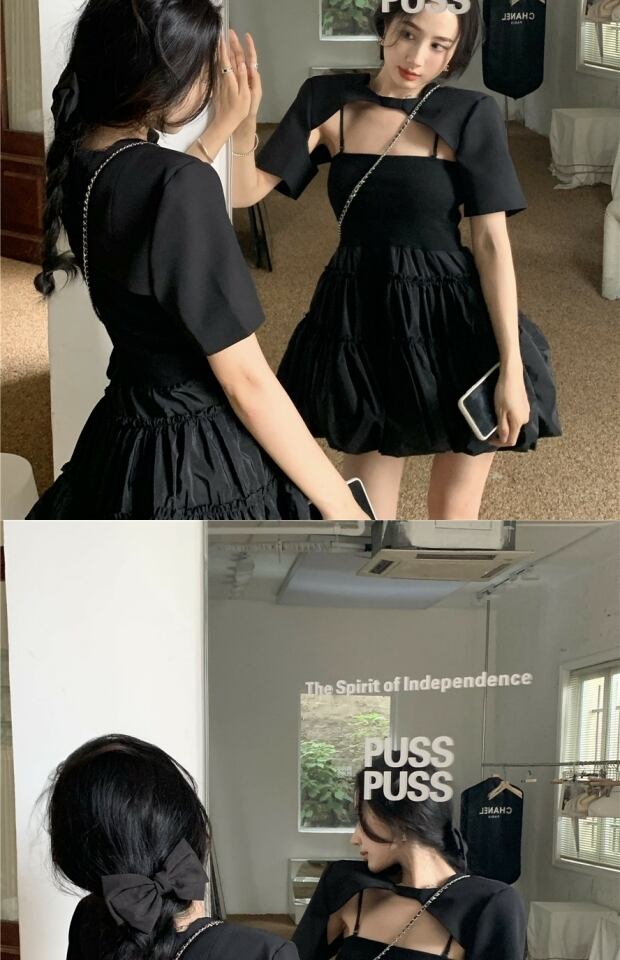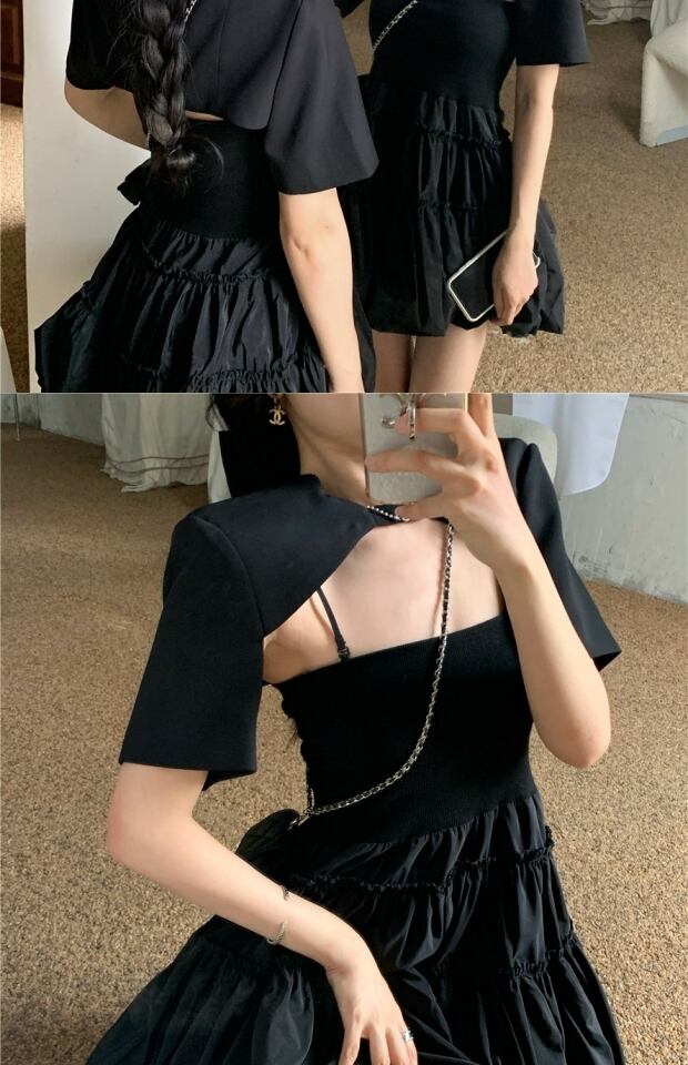 ブラックドレス サマーショート 夏物 Vネック kumikum60317296046
