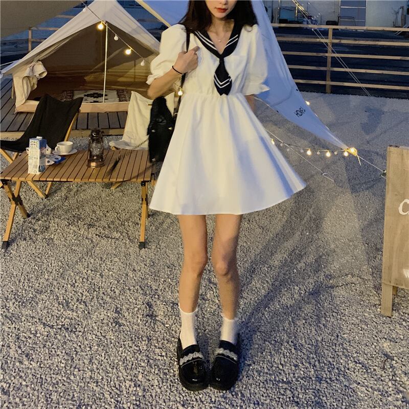 スリムAラインスカート サマーホワイトスリーブドレス 夏物 kumikum4791147739
