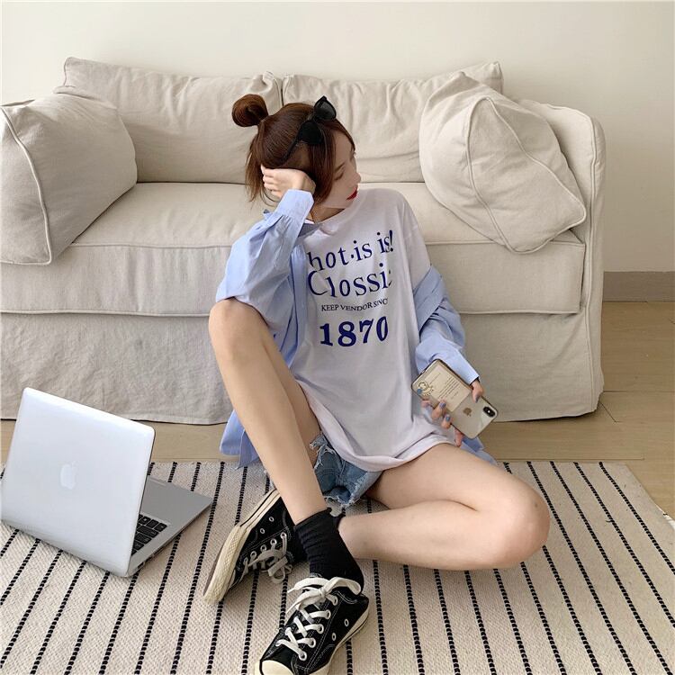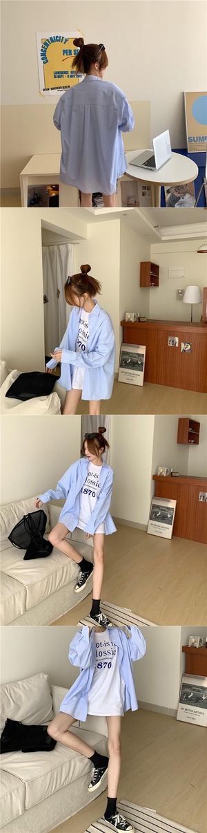 ブルーシャツ サマールーズカジュアルトップス ロング 夏物 kumikum81513570369