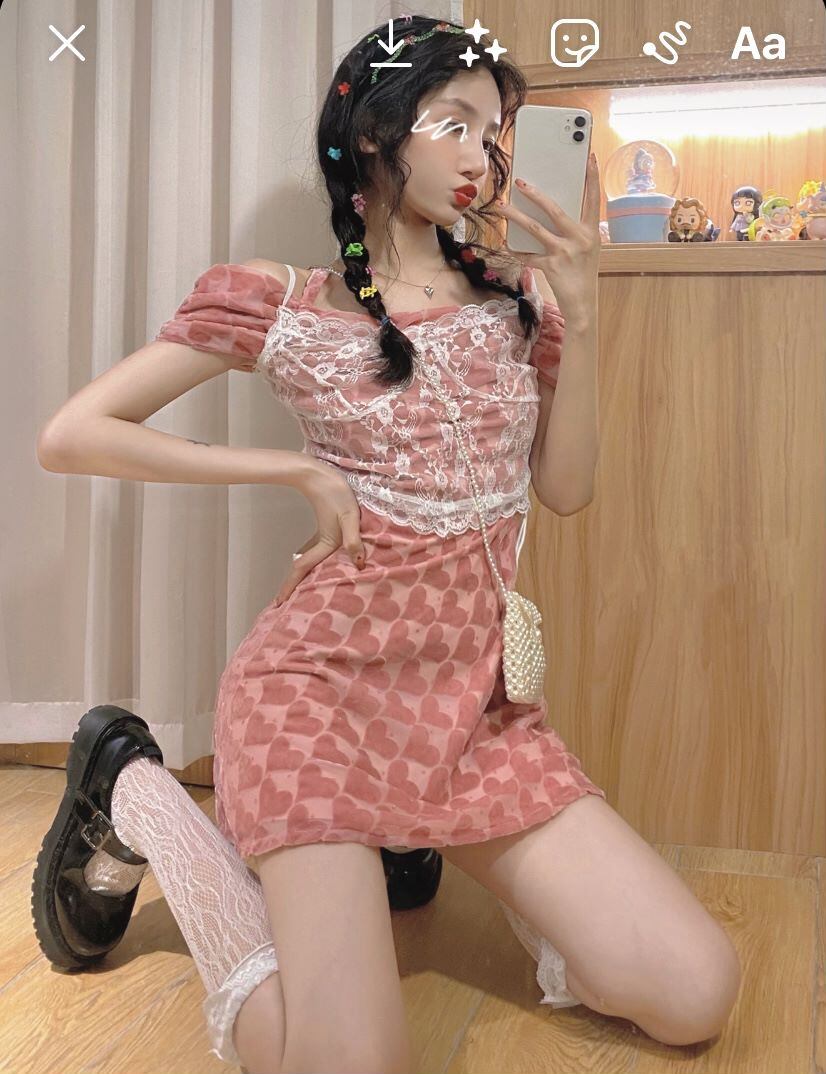スリムスカート サマー薄手半袖スリーブドレス ショート ハーフスリーブ 大人ガーリー スウィート キュート カジュアル 夏物 スクウェア kumikum7364973817