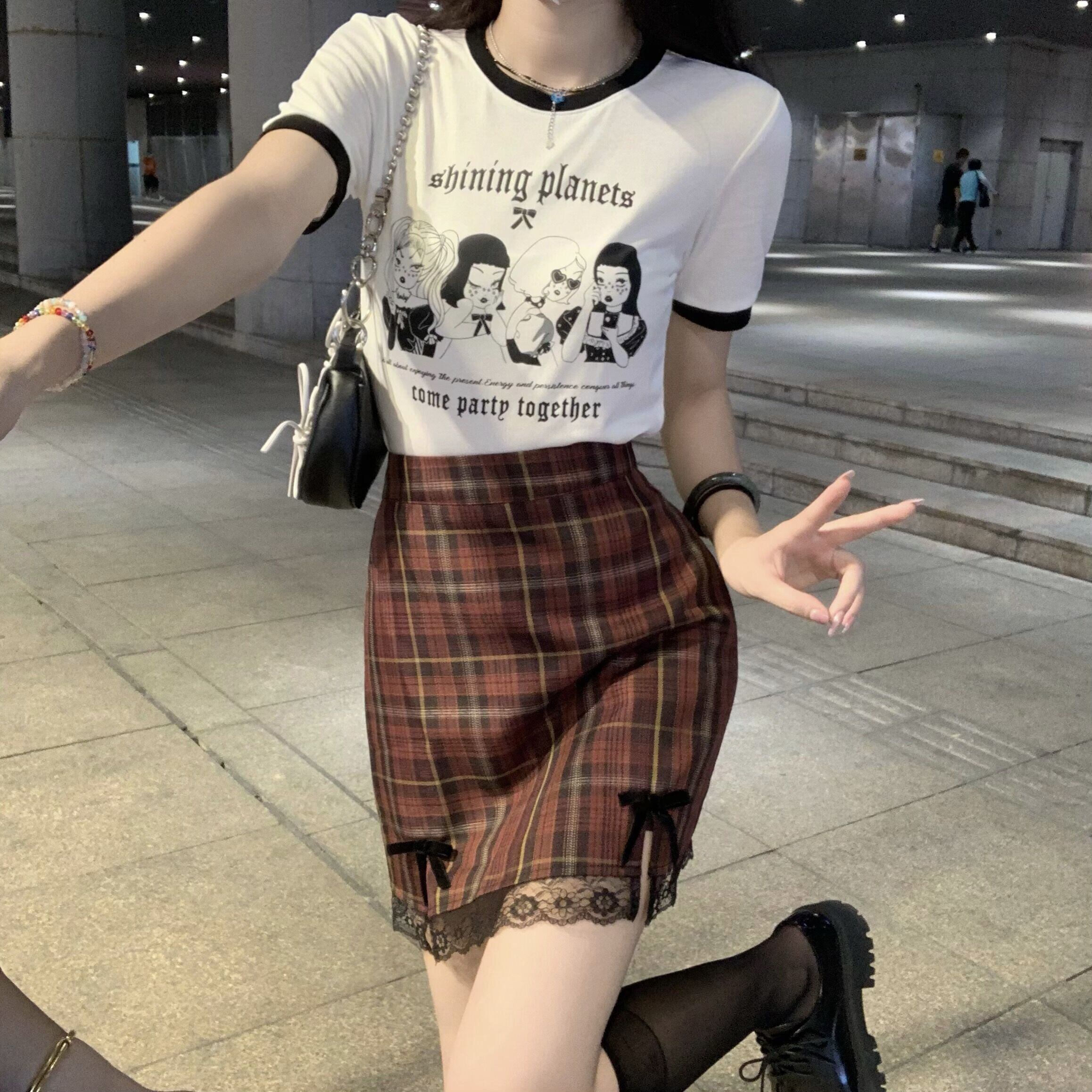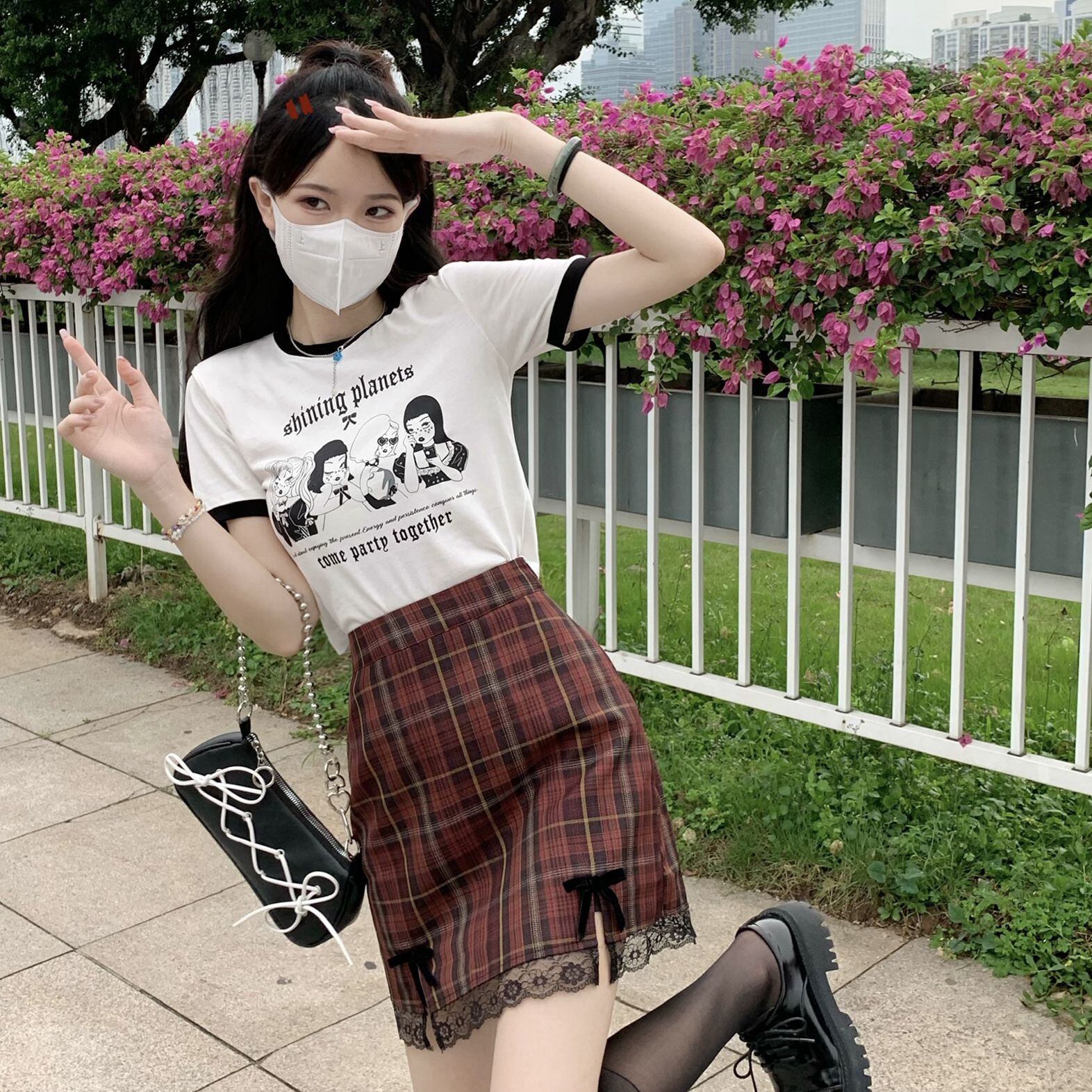 プリントTシャツ サマーカラーラウンドネック薄手トップス レディース 夏物 Oネック kumikum53091426869