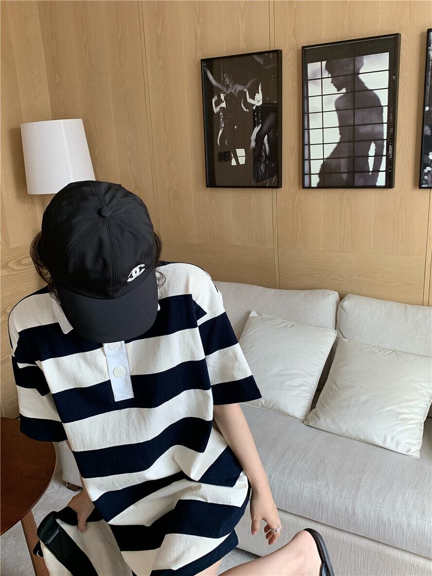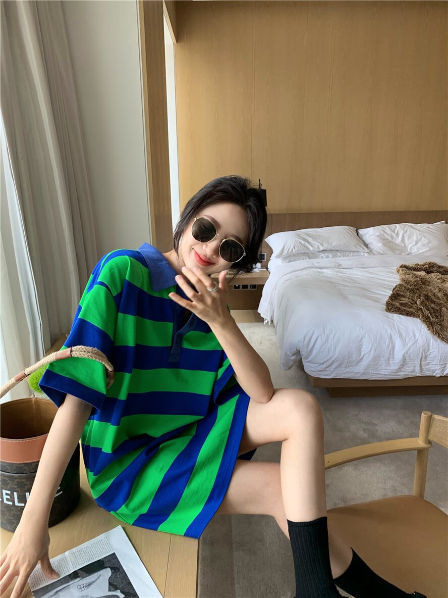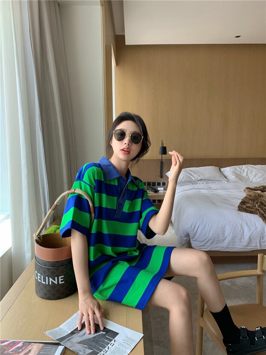 カラーストライプカジュアルドレス サマールーズTシャツ スカート 夏物 kumikum75059244489