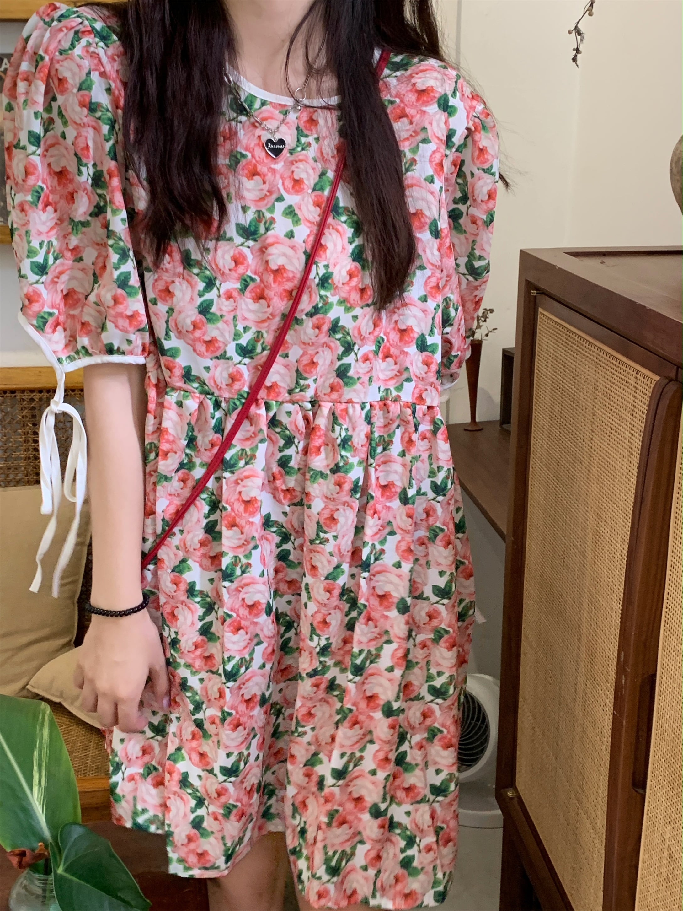 ルーズフローラルシフォンスカート サマー薄手ドレス 夏物 花柄 kumikum82596248886