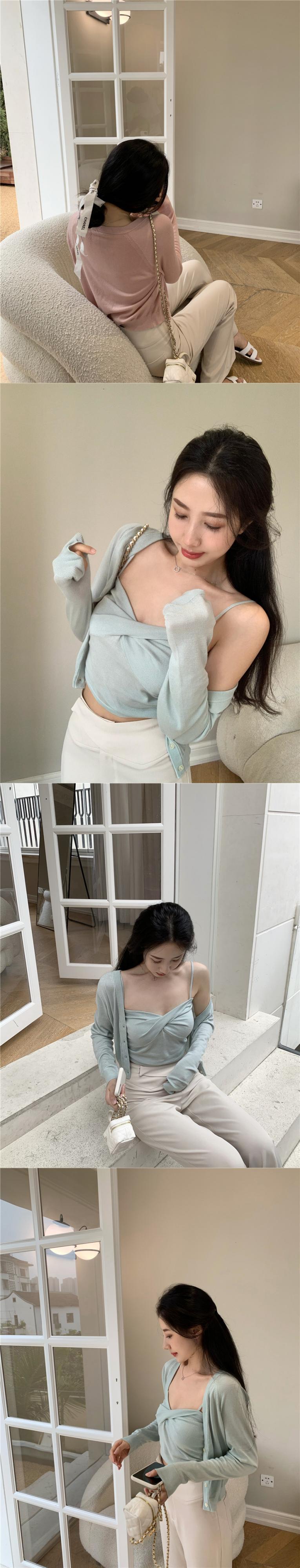 Vネックブラウス サマーショートカーディガンレディース ロング 夏物 kumikum92129590823