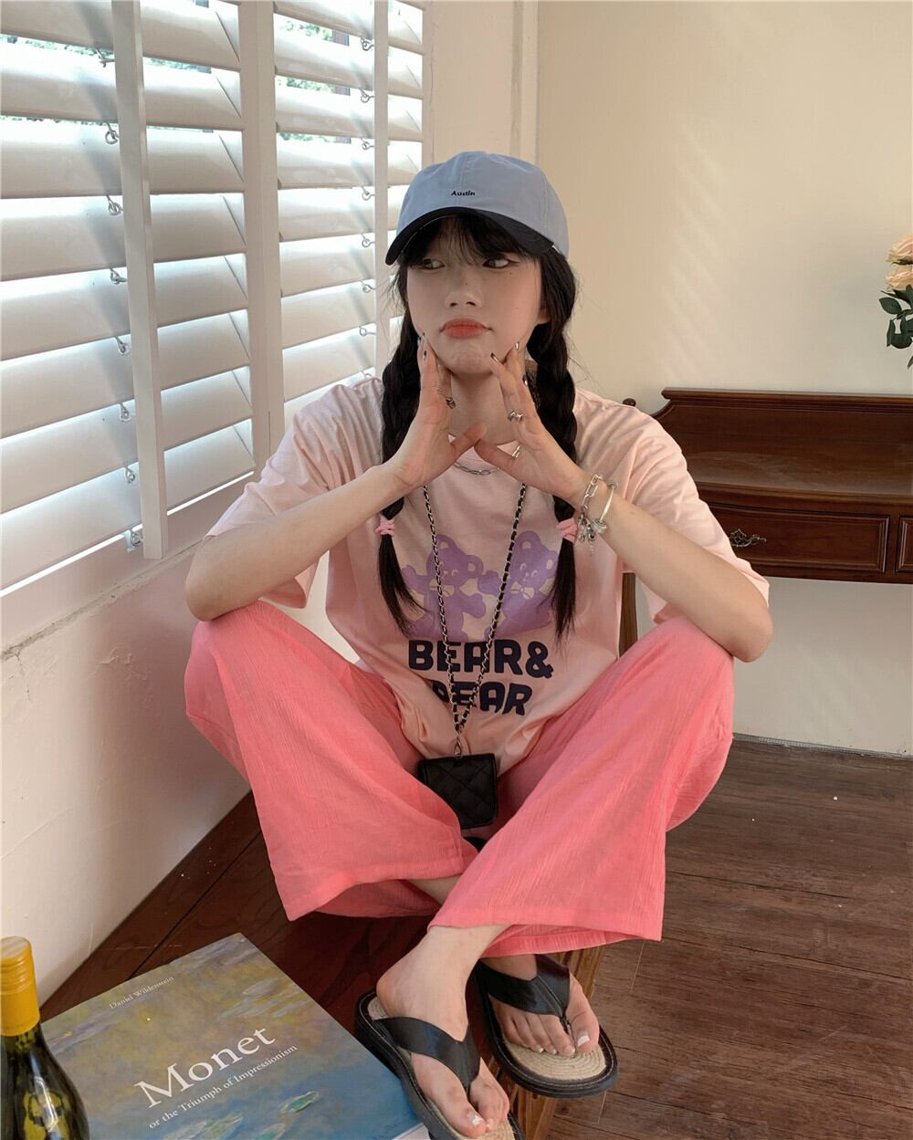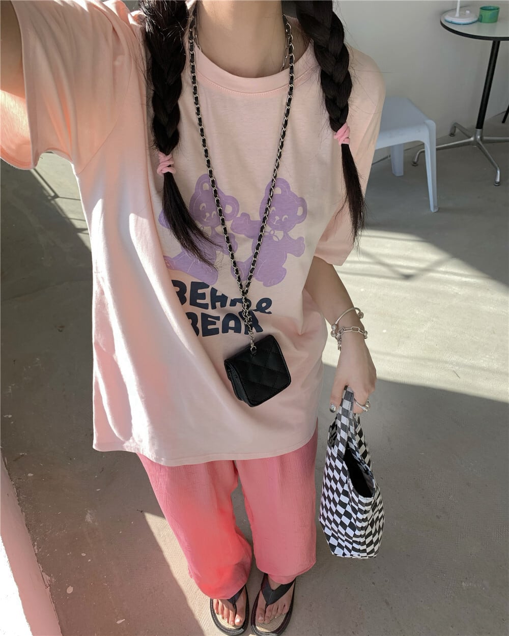 パターンプリントトップス サマーカジュアルラウンドネック半袖スリーブTシャツ ショート ハーフスリーブ 夏物 Oネック kumikum75153217009
