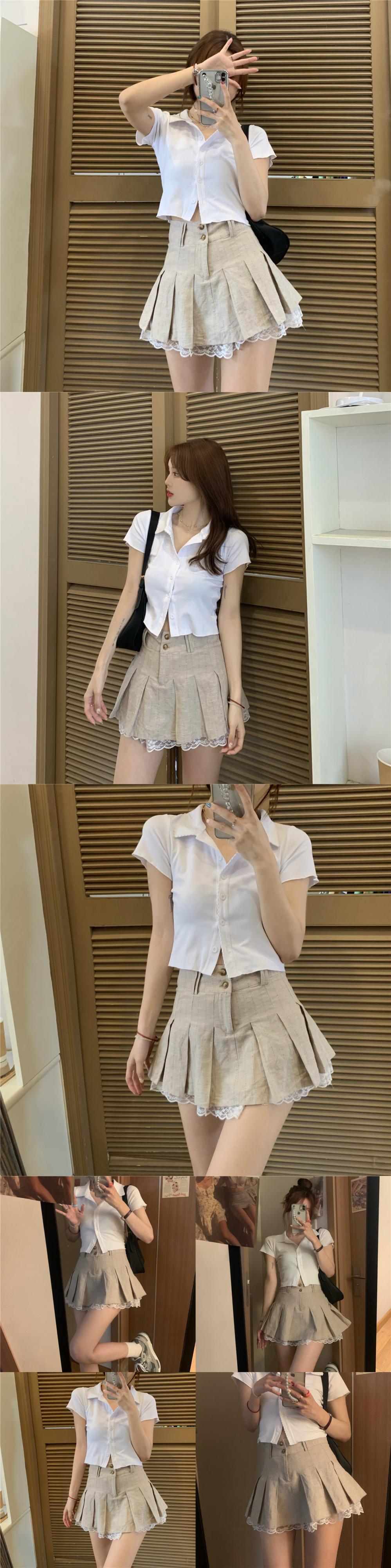 スタイルTシャツ トップス レディースサマーレースプリーツスカート 夏物 ステッチ kumikum98517546679