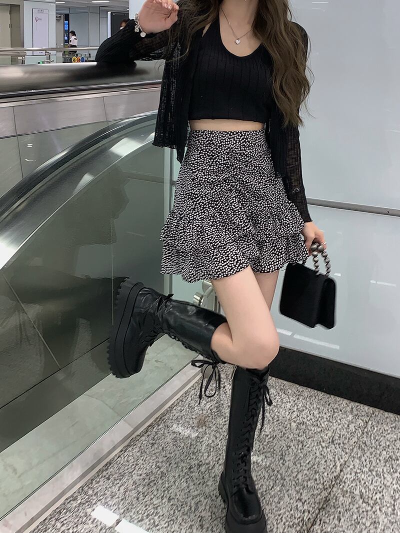 フローラルシフォンスカート サマーハイウェストウェスト薄手Aライン 夏物 花柄 kumikum94225428013