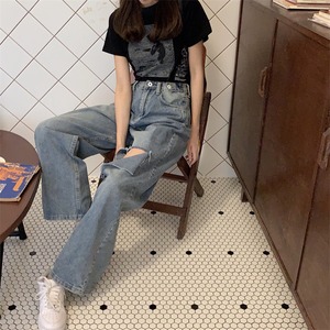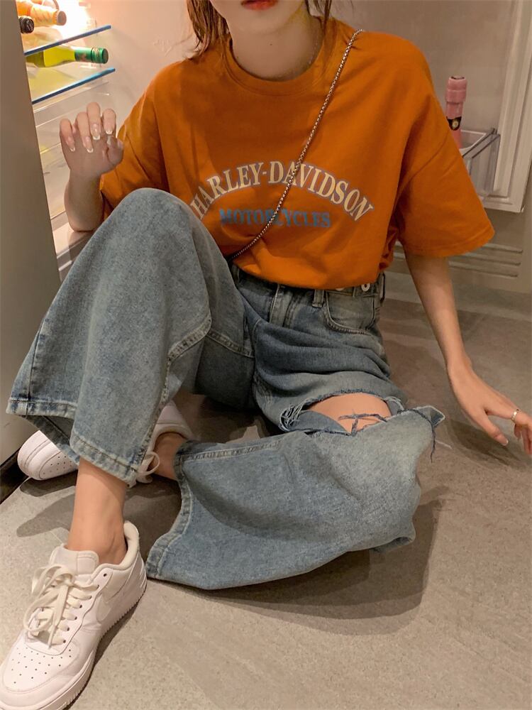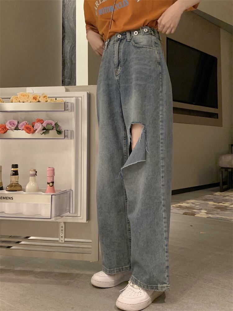 スタンダードハイウェストウェストパンツ レディースルーズ薄手サマージーンズ レトロ 夏物 kumikum72590310084