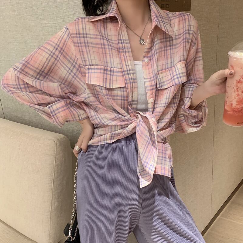 ルーズシャツ 格子柄ジャケット ロング kumikum17724473415
