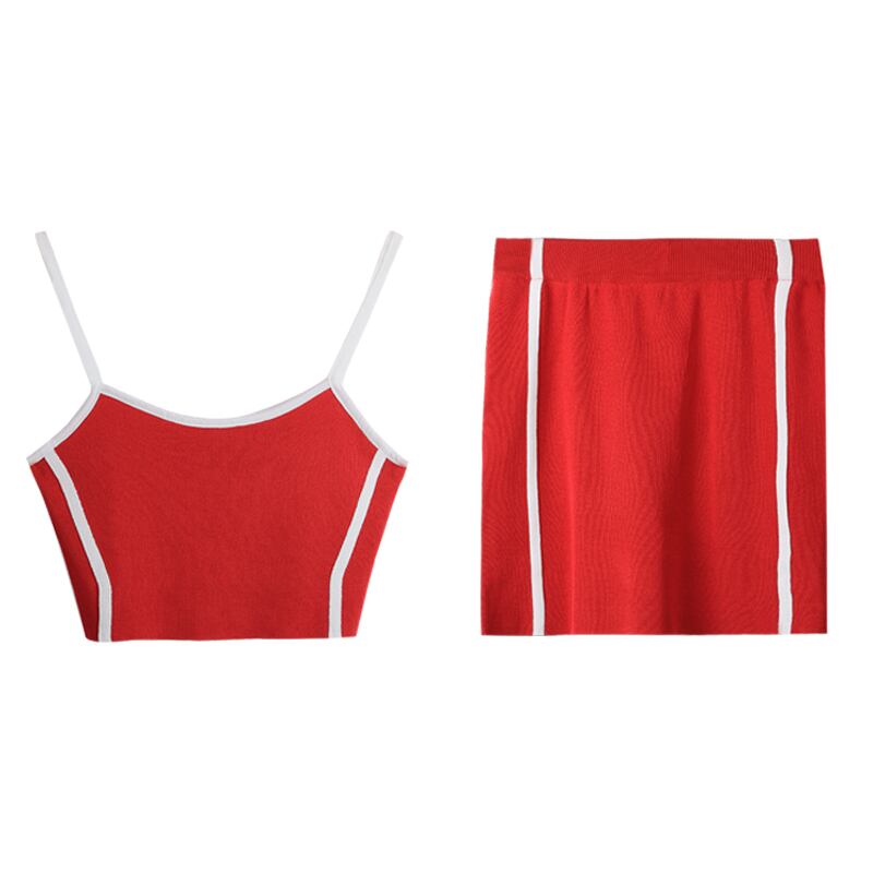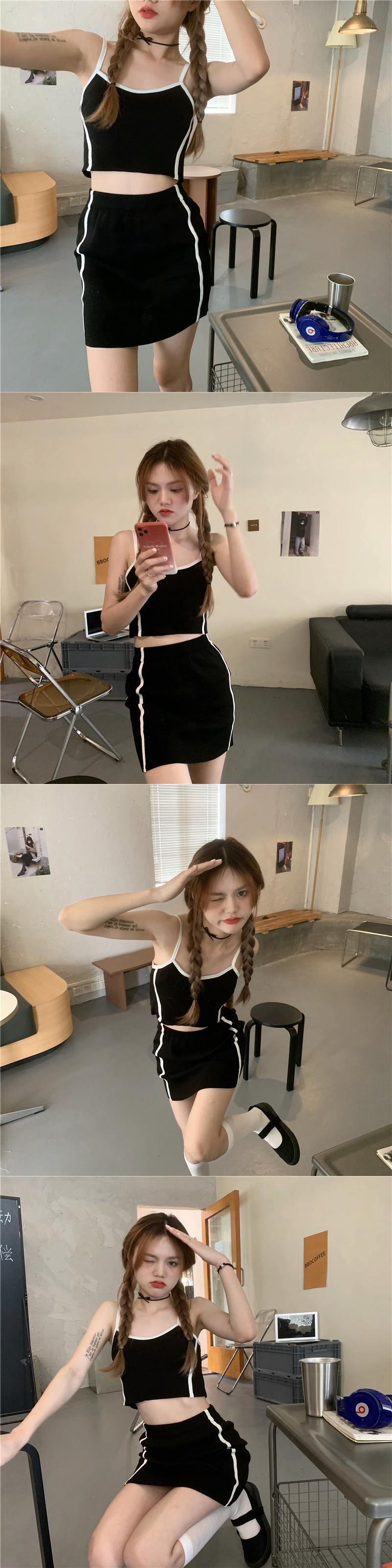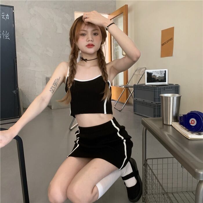 サマースタンダードニットトップス ハイウェストウェストスカート レトロ 夏物 kumikum36555387490