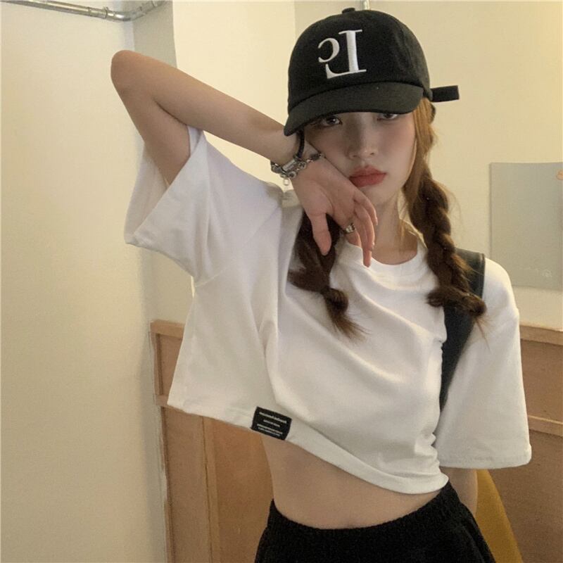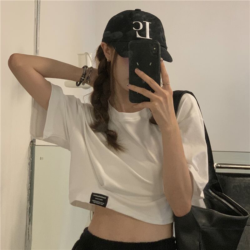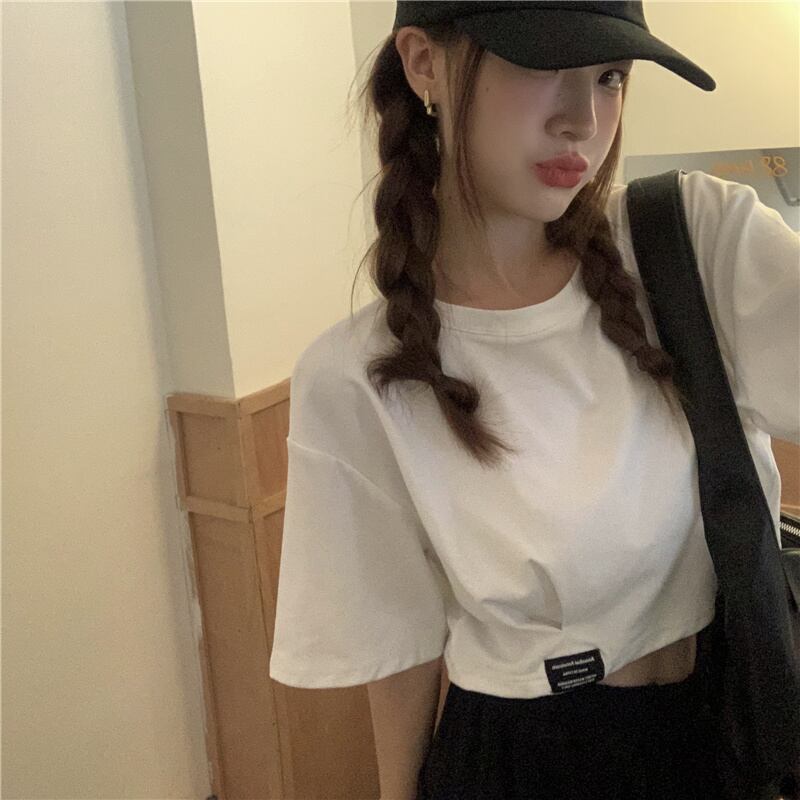 薄手ショートトップス レディースサマーレッドラウンドネックTシャツ 夏物 Oネック kumikum90544805276