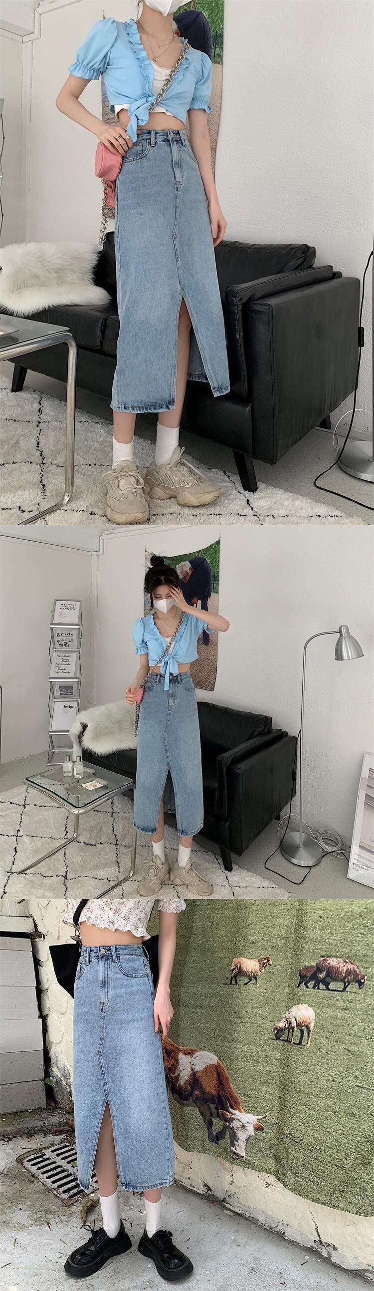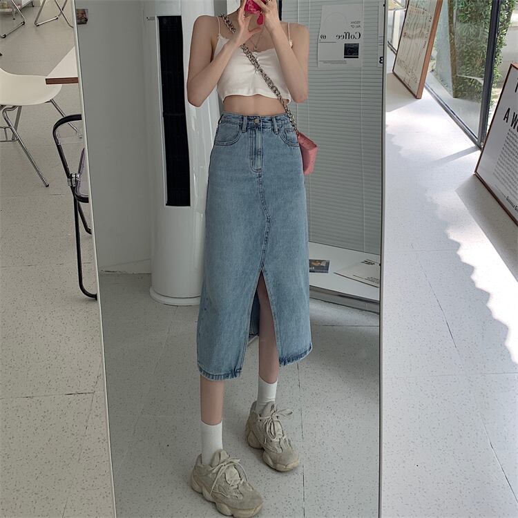 スタンダードブルースカート サマーハイウェストウェストAライン レトロ 夏物 kumikum93233457679