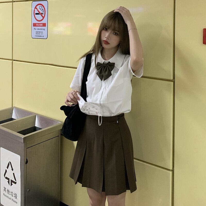 スタイルリボンショートシャツ サマーハイウェストスカート 夏物 kumikum34604622002