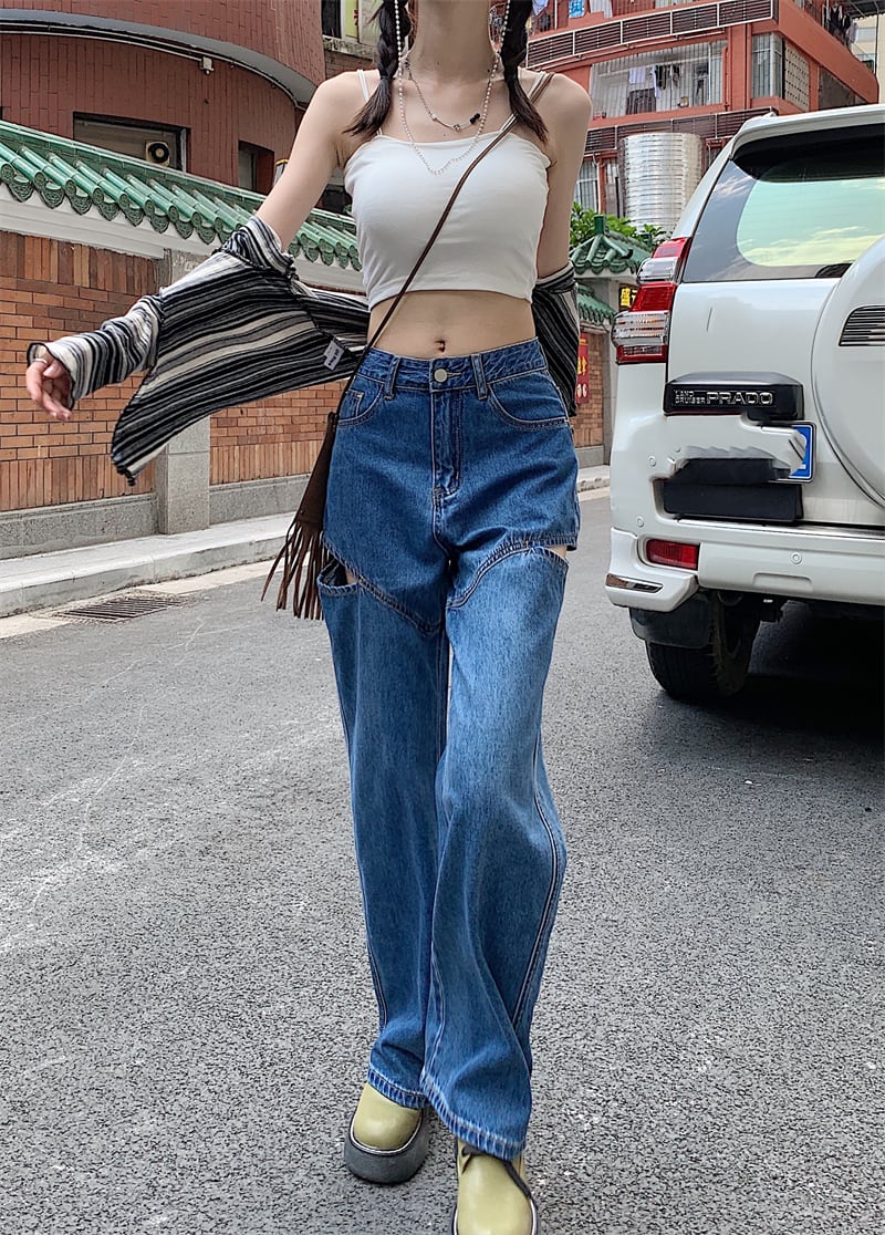 サマースタンダードパンツ ハイウェストウェスト薄手ワイドレッグジーンズ レディース レトロ 夏物 ワイドパンツ kumikum61005616359