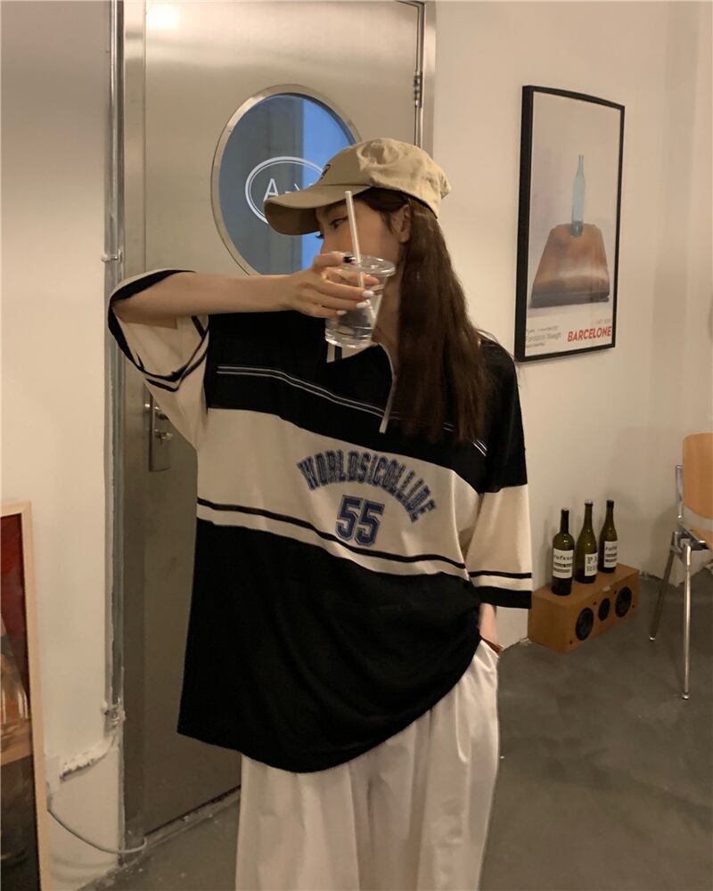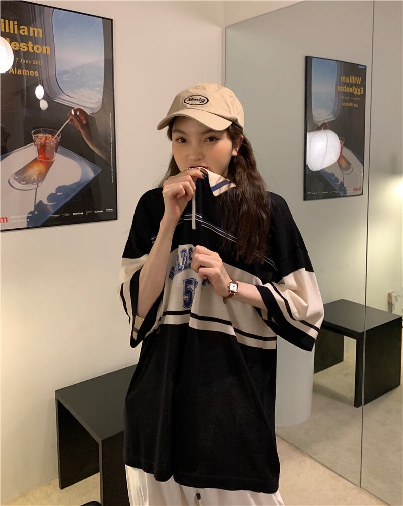 カラーセーター Tシャツ シャツ レディースサマースタイルプリント柄ルーズ かわいい 夏物 kumikum85827404091