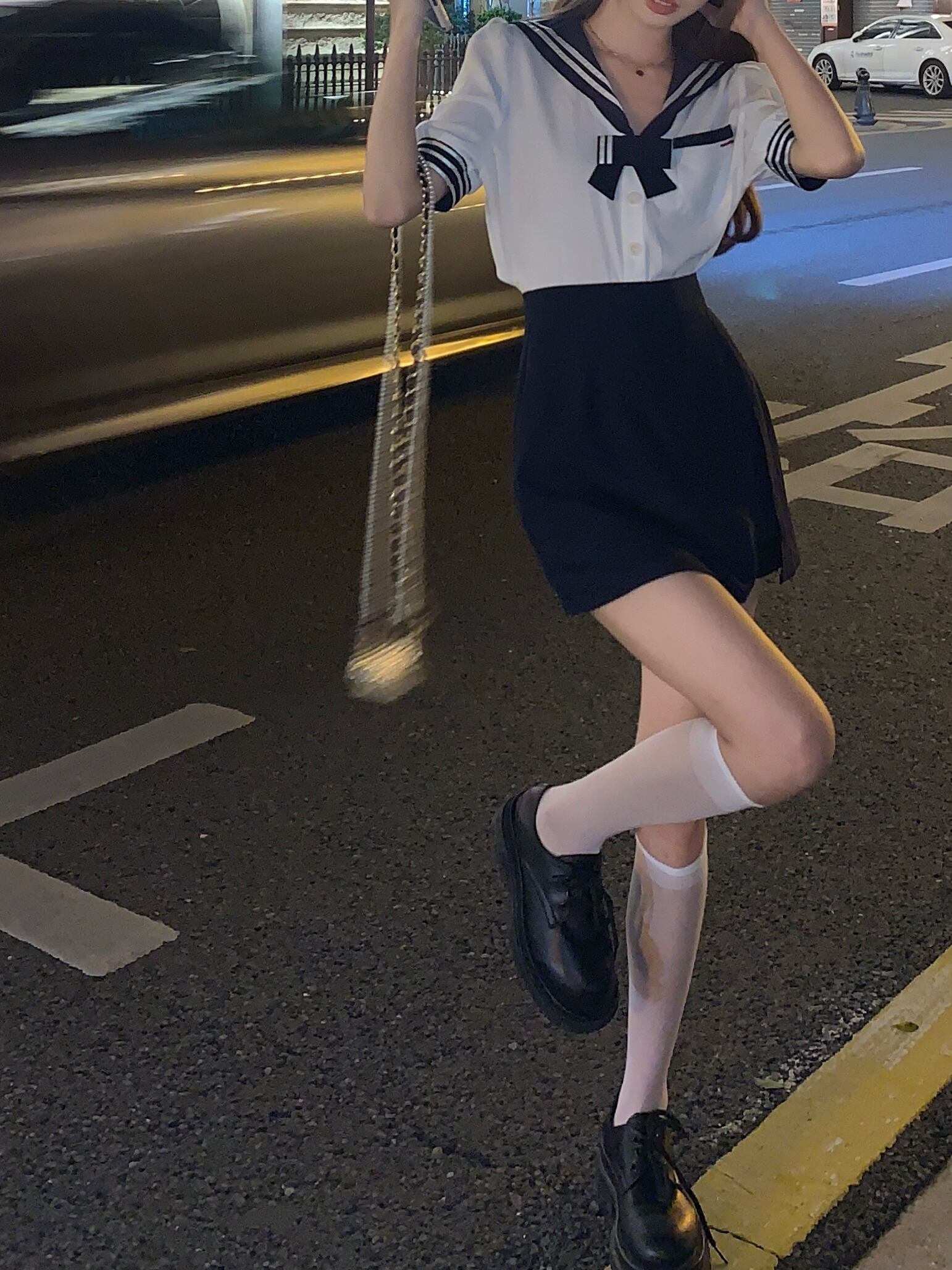 ネイビーカラーブラウス サマーハイウェストウェストAラインスカート 夏物 kumikum29516114982