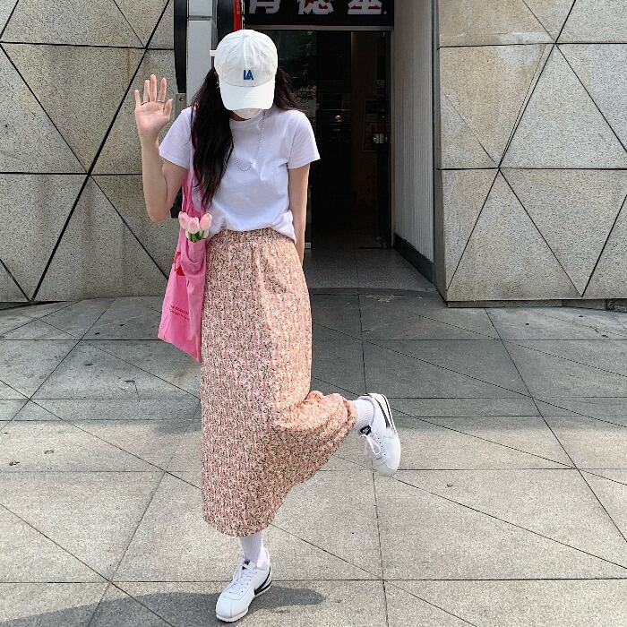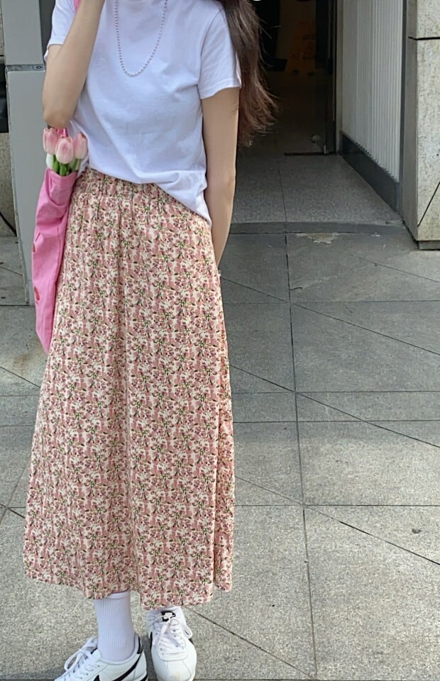 サマーフローラルスカート Aライン ピンク 夏物 花柄 kumikum76224014693