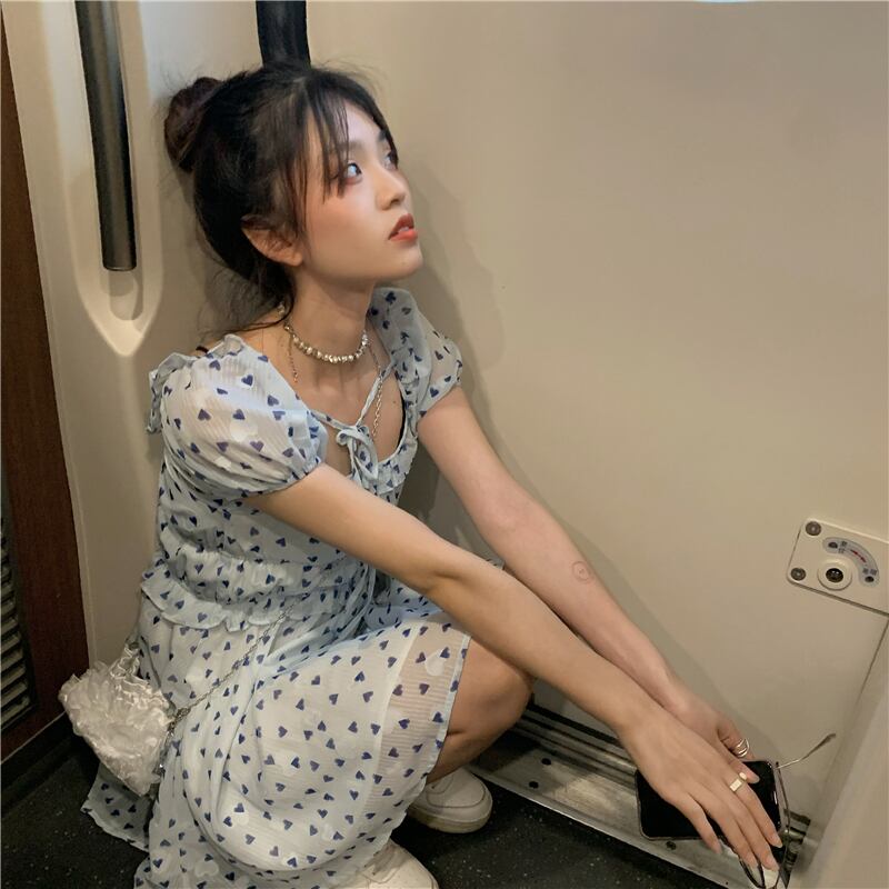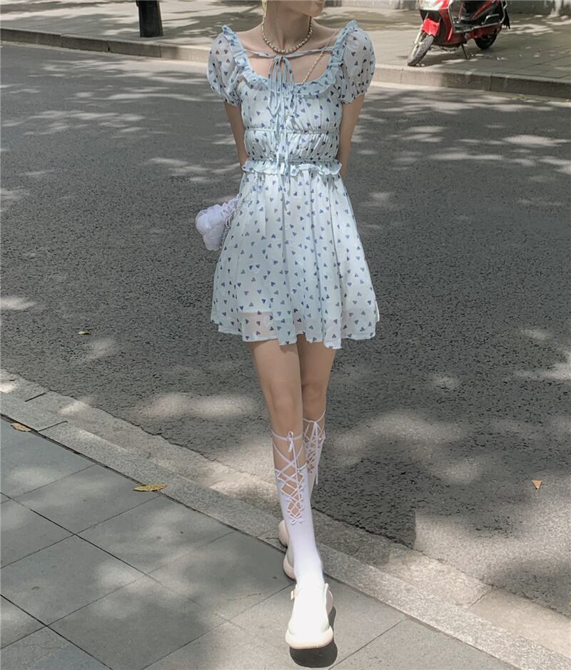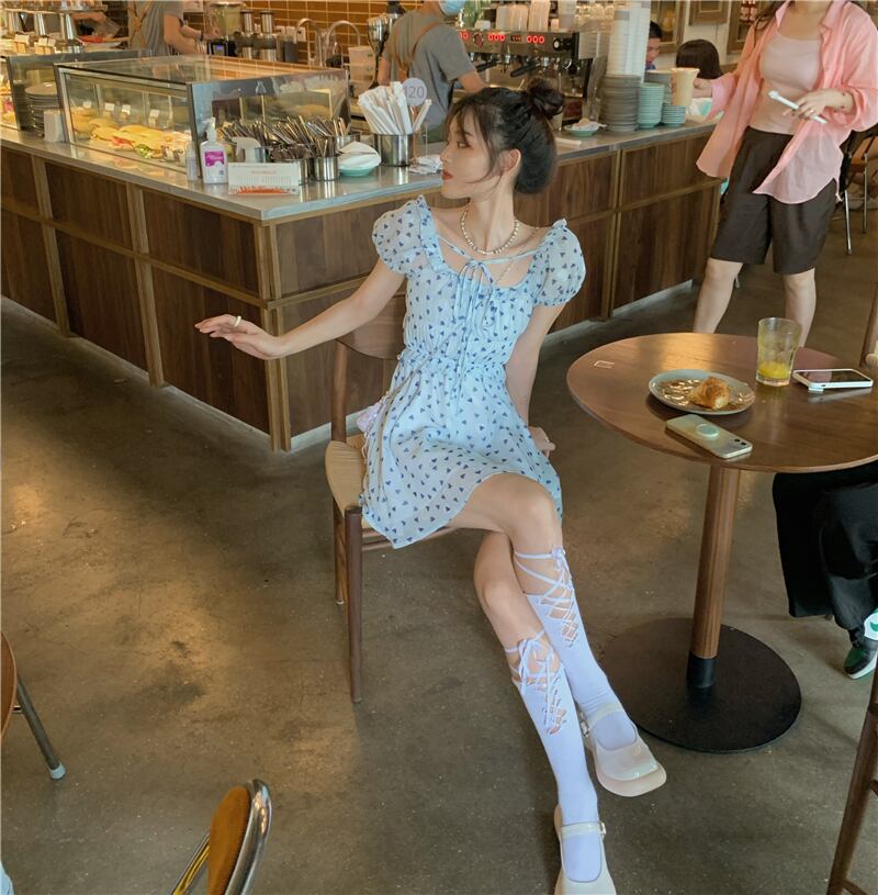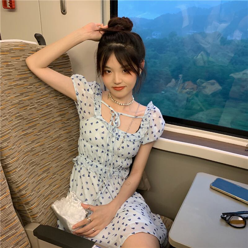 スリーブドレス サマースタイルウェスト薄手Aラインスカート 大人ガーリー スウィート キュート カジュアル 夏物 スクウェア kumikum89881453401