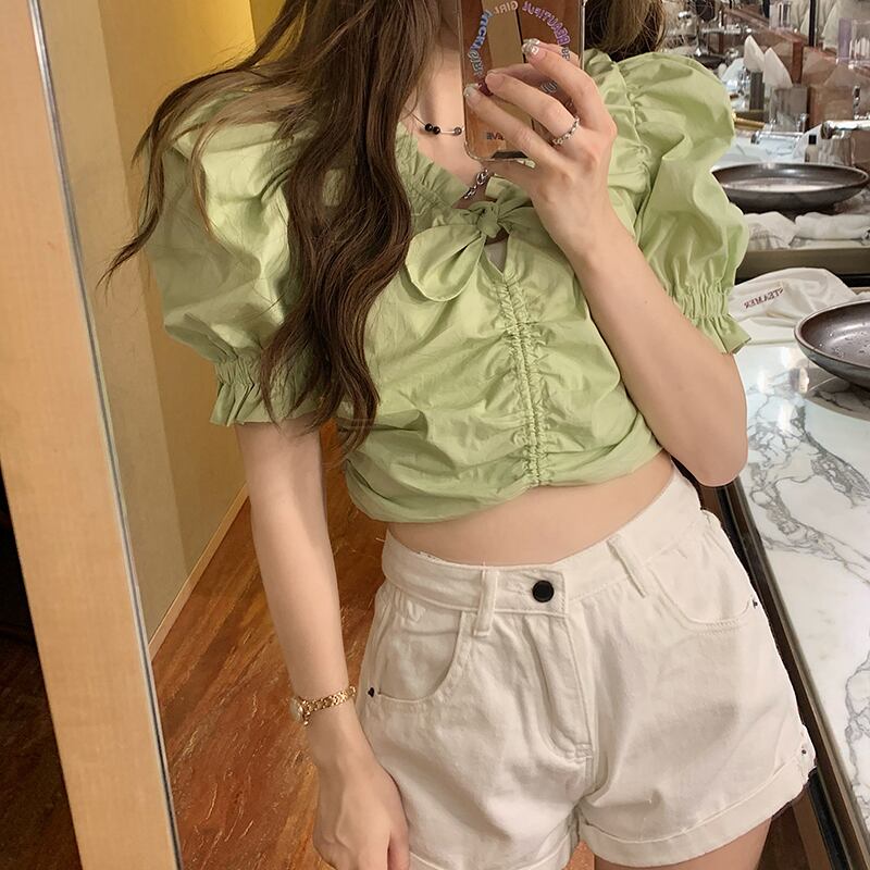 スリーブショートシャツ サマーVネックプリーツ 夏物 kumikum43469007244