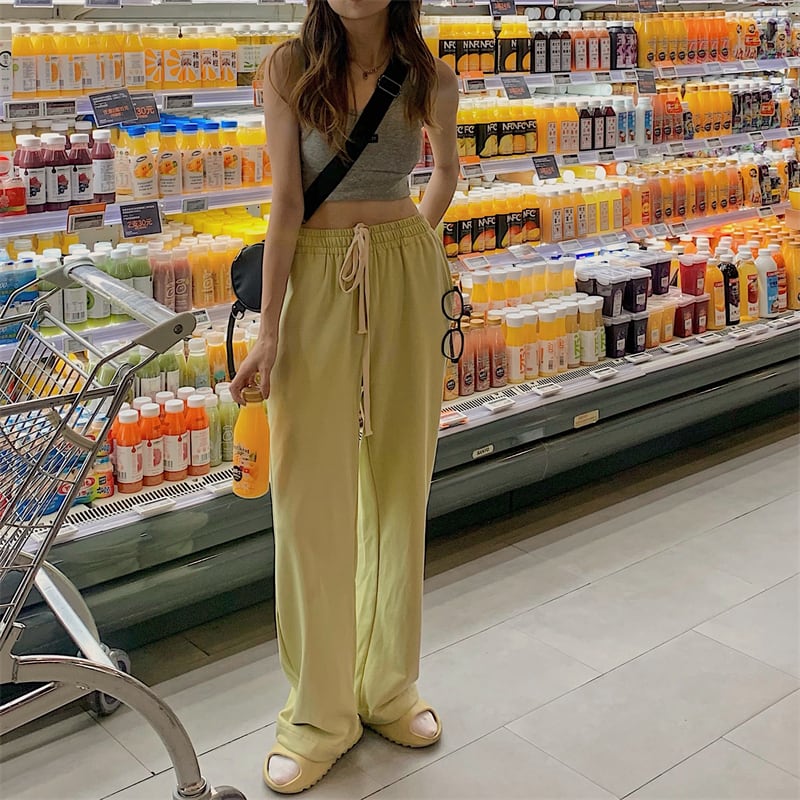 ルーズハイウェストウェストワイドレッグパンツ サマーカジュアルソリッド カラーレディース 夏物 ワイドパンツ ソリッドカラー kumikum881183348