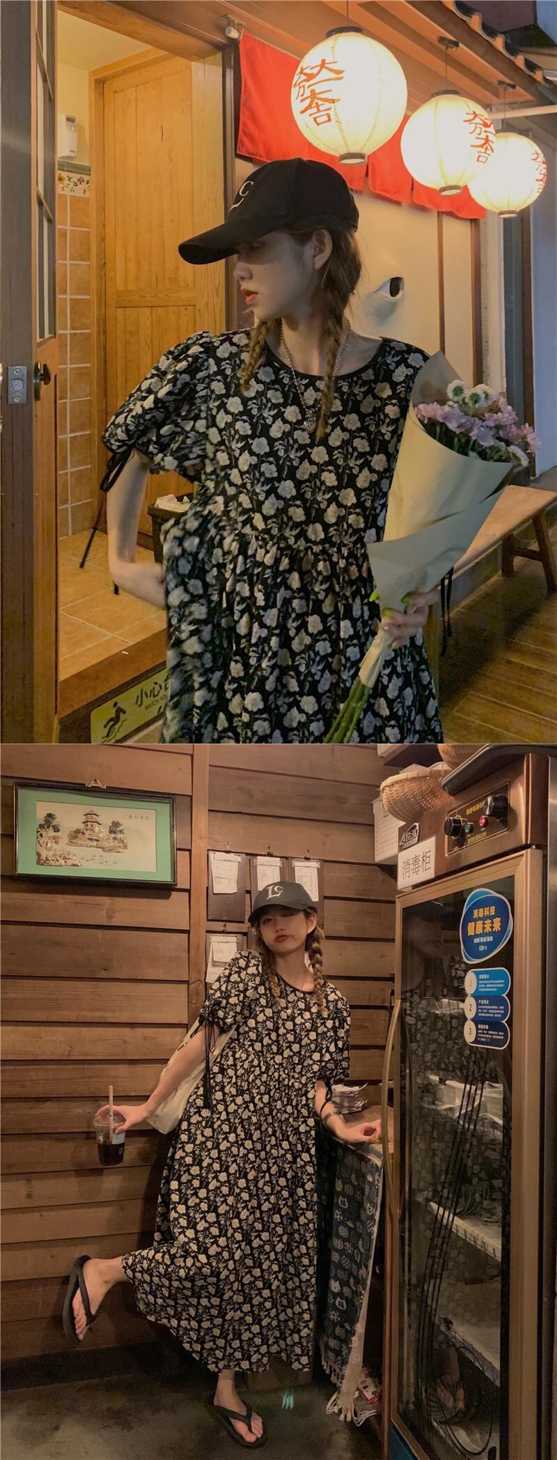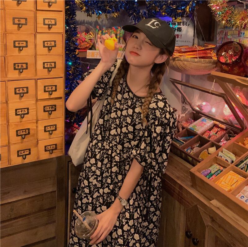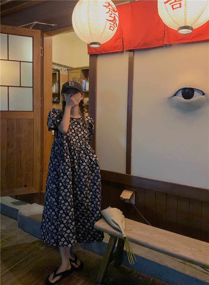 スカート サマースタンダードルーズ薄手スリーブフローラルドレス レトロ 夏物 花柄 kumikum26202736214