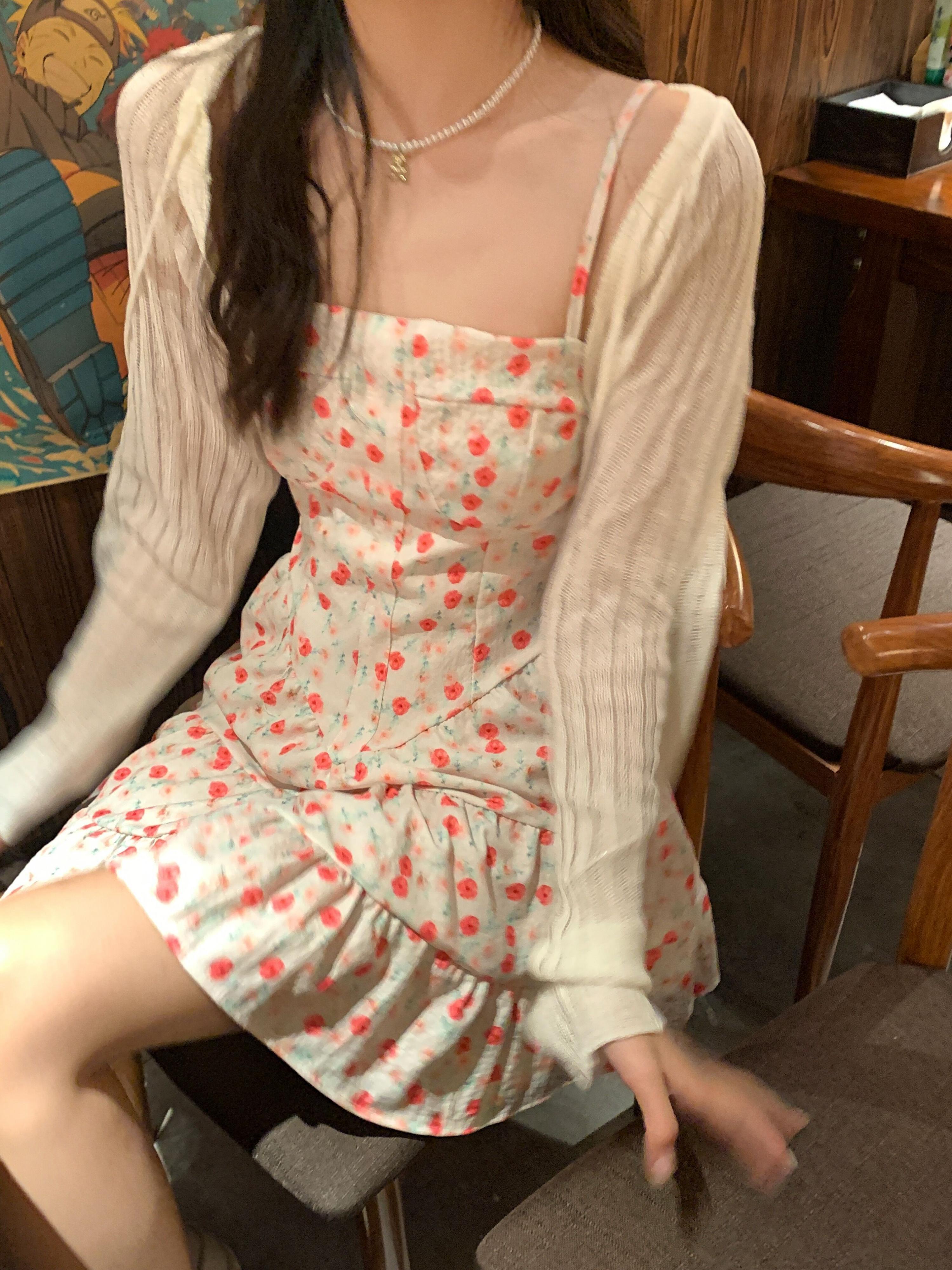 フローラルショートスカート サマースリムドレス レッド 夏物 花柄 ピュア kumikum78532882852