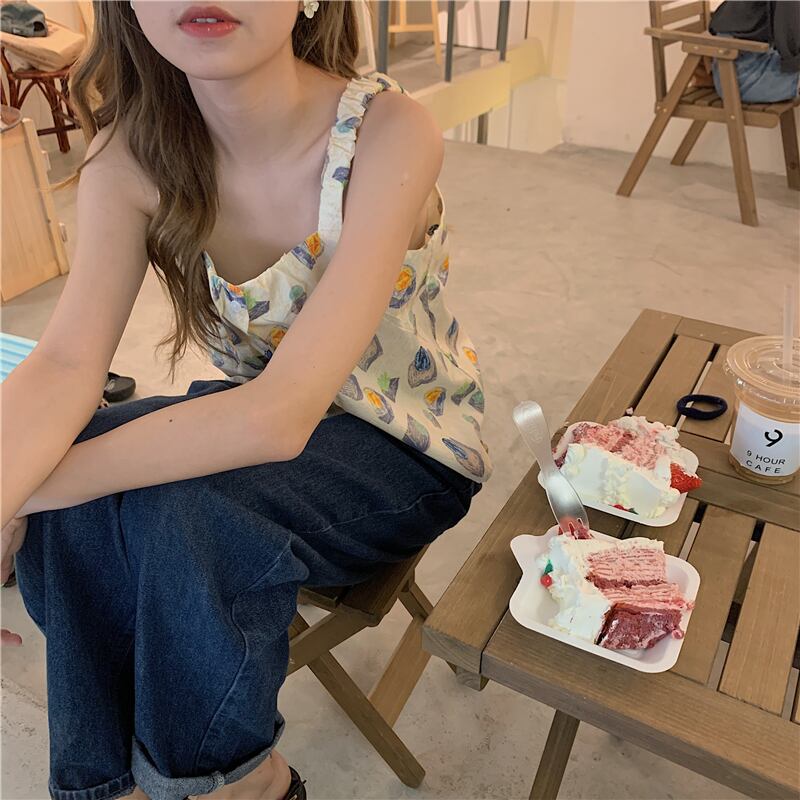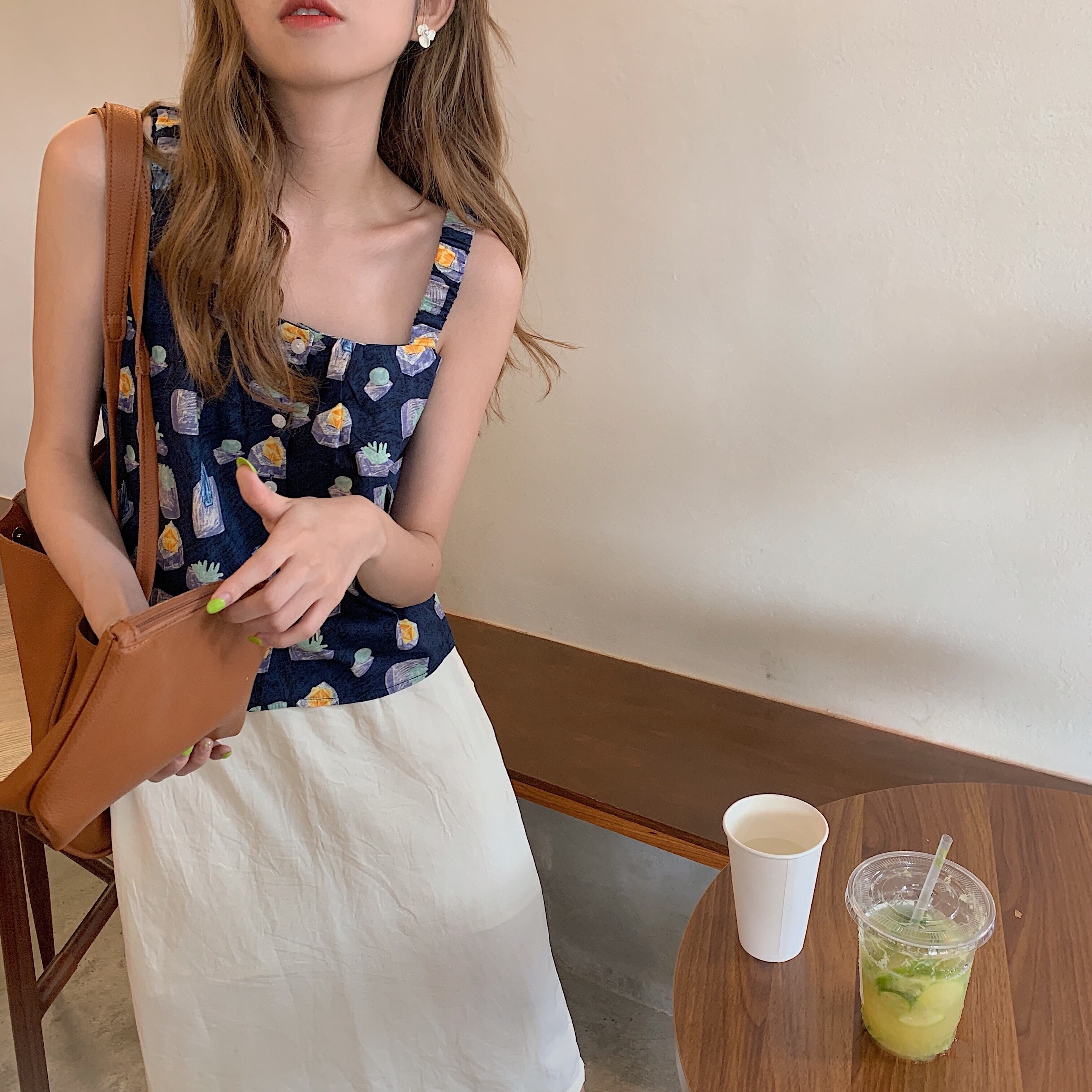 スタンダードプリントサマー薄手ノースリーブトップス レトロ 夏物 kumikum3919770288