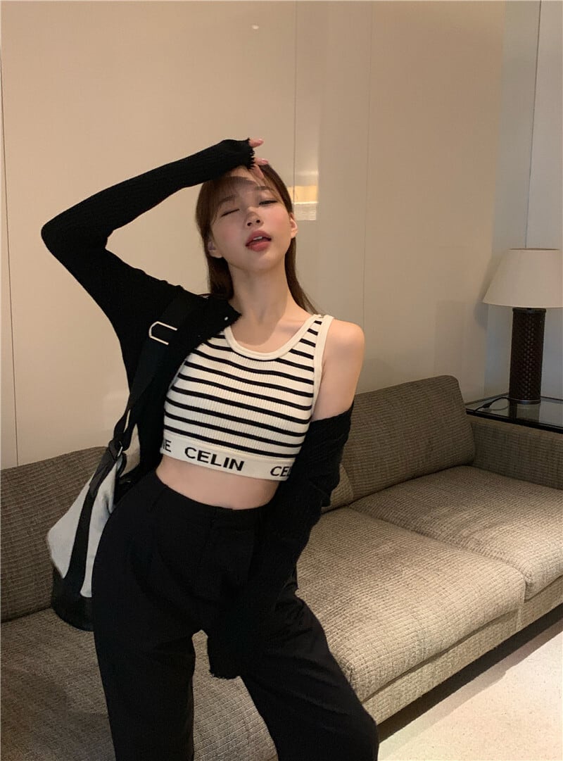 色:7089#ブラックカーディガン,7090#ストライプベスト