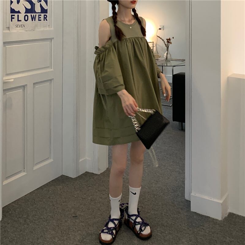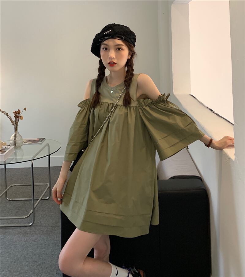 ドレス サマールーズスカート 夏物 オフショルダー ステッチ kumikum20469440140