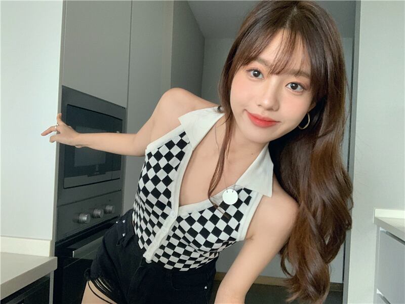 ショートスリムニットトップス Vネックホルター サマー 夏物 kumikum21604389356