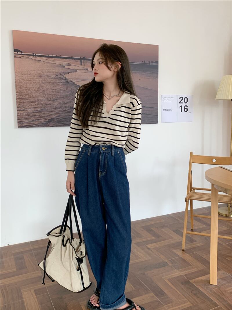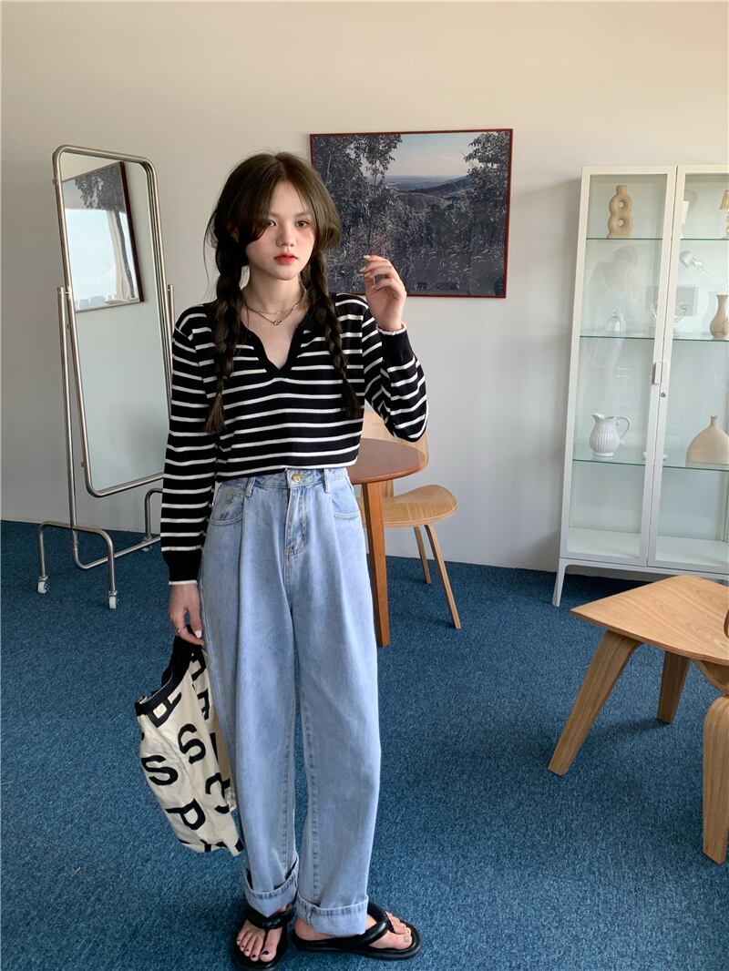 ニットトップス サマー薄手VネックカジュアルTシャツ ロング 夏物 kumikum15109461567
