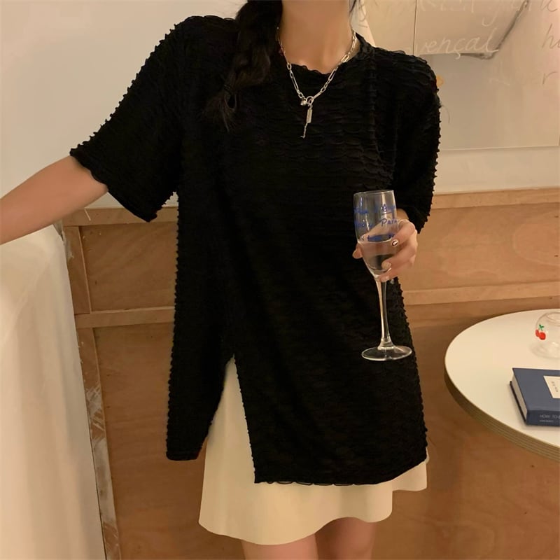薄手トップス レディースサマーソリッド カラーTシャツ 夏物 ソリッドカラー kumikum57766704215
