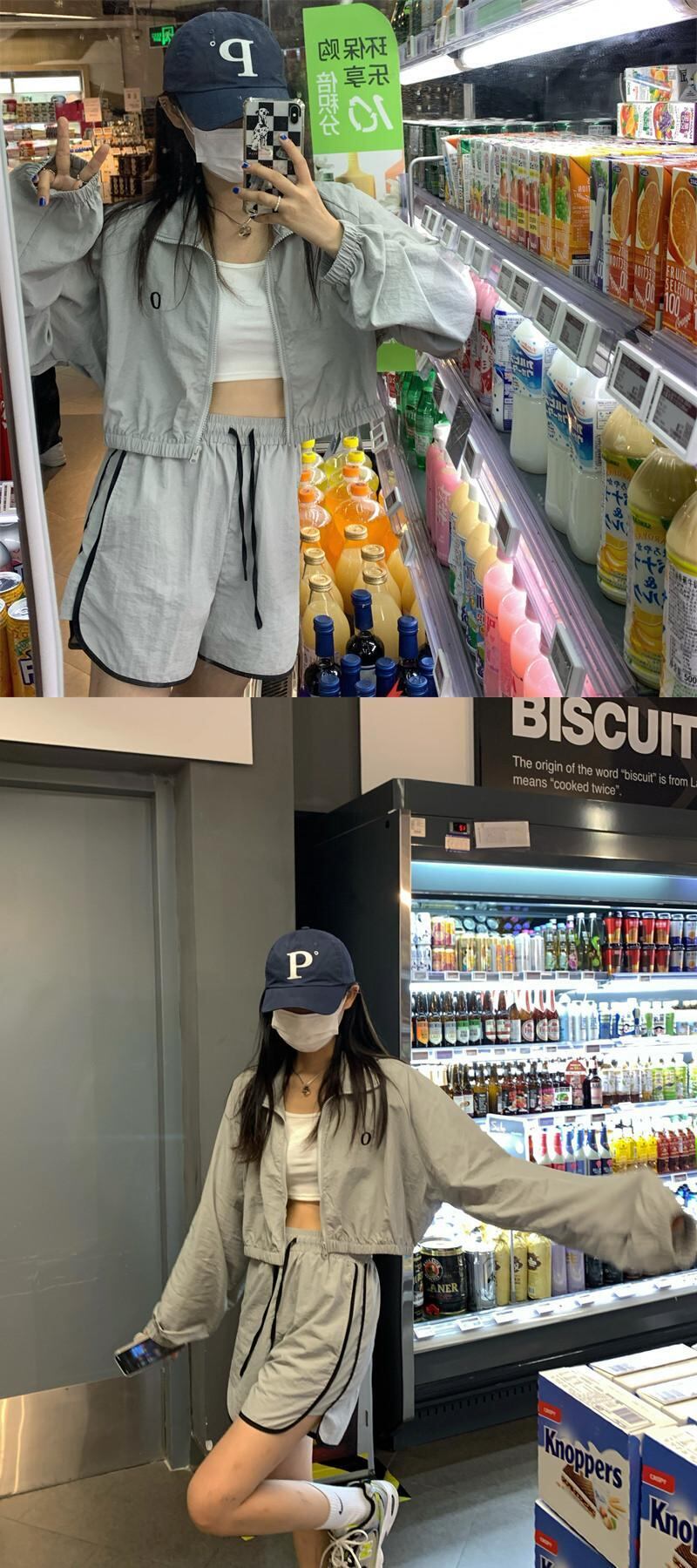 色:黒いジャケット,黒のショートパンツ,グレーコート,グレーのショートパンツ