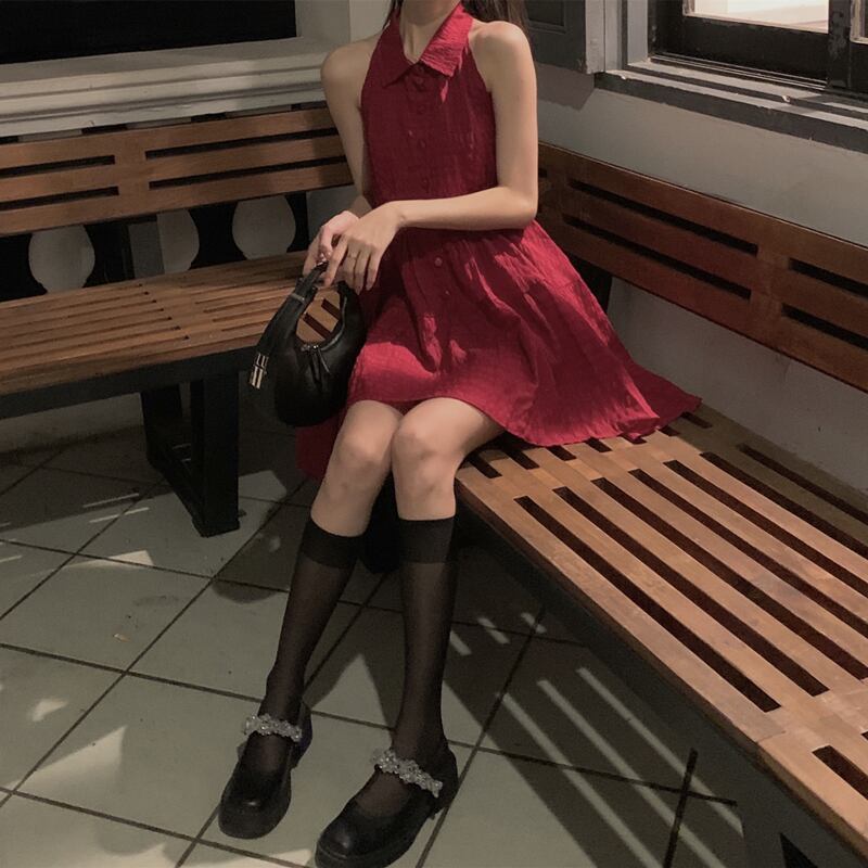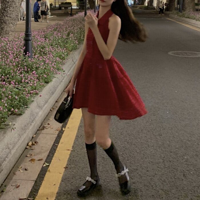 バックスリムAラインスカート サマードレス レッド 夏物 kumikum52037393286