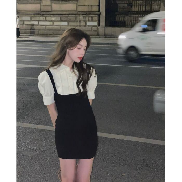 薄手ノースリーブブラックショートスカート サマースリムドレス 夏物 kumikum3666027738