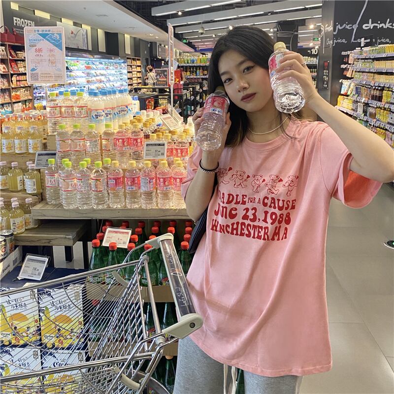 プリント柄ルーズTシャツ サマーカジュアルラウンドネックトップス 夏物 Oネック kumikum17899879396