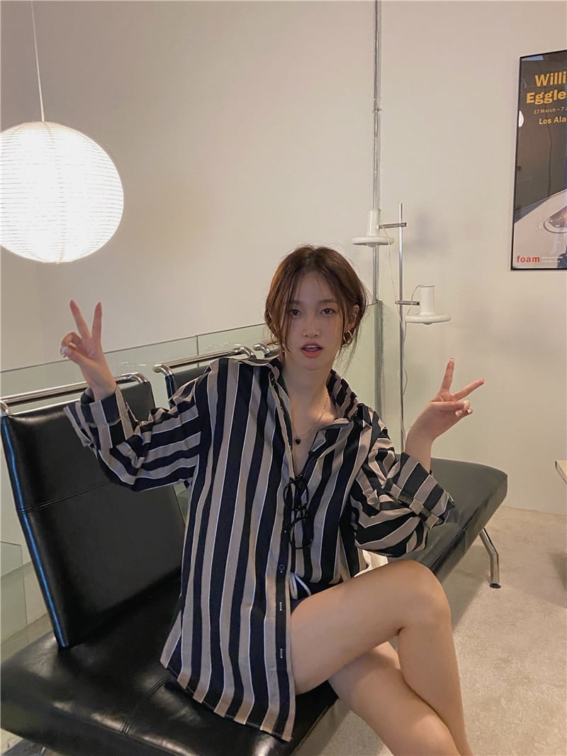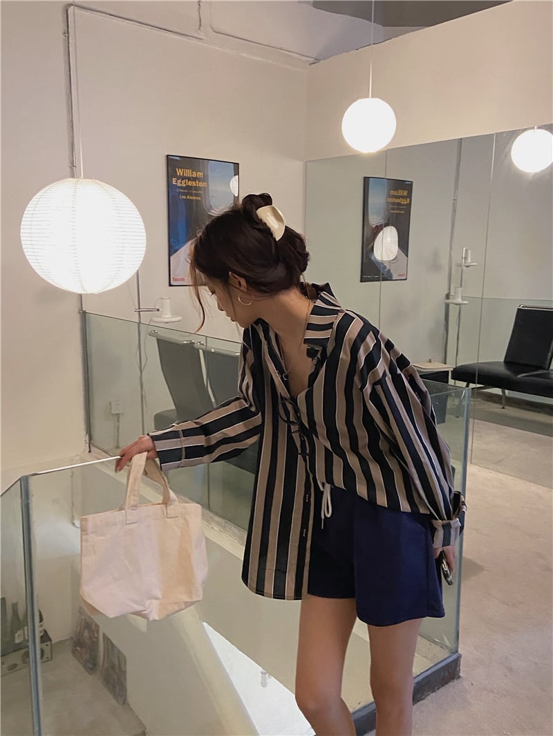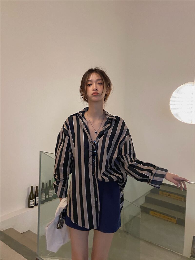 スタンダードルーズストライプシャツ レディースサマーコート ジャケット レトロ 夏物 kumikum63163192099