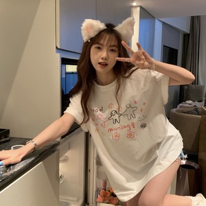 プリントTシャツ シャツ サマー薄手ルーズレディース 大人ガーリー スウィート キュート カジュアル 夏物 kumikum87481383380