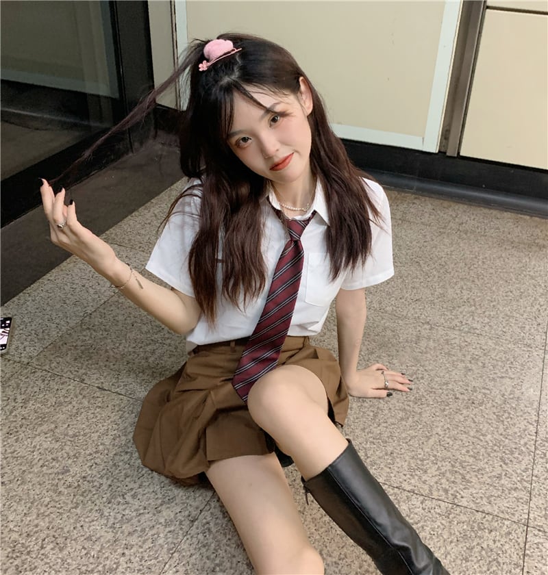 スタイルサマーシャツ プリーツスカート 大人ガーリー スウィート キュート カジュアル 夏物 kumikum81450830241